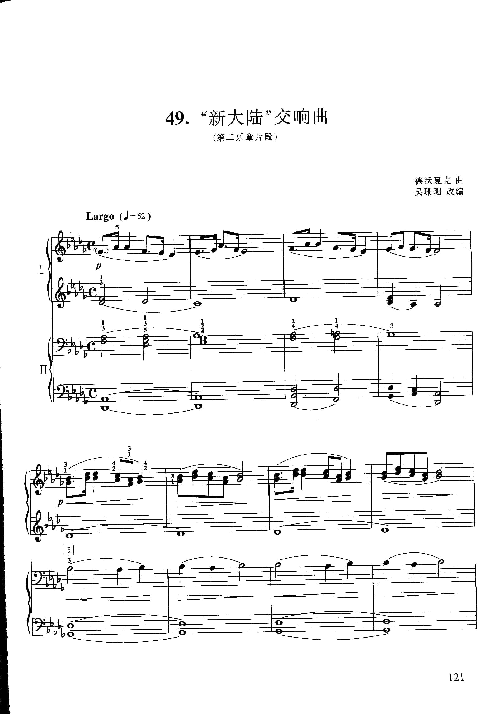 少儿钢琴四手联弹曲目“新大陆”交响曲(第二乐章片段) 德沃夏克曲 吴珊珊改编(五线谱)