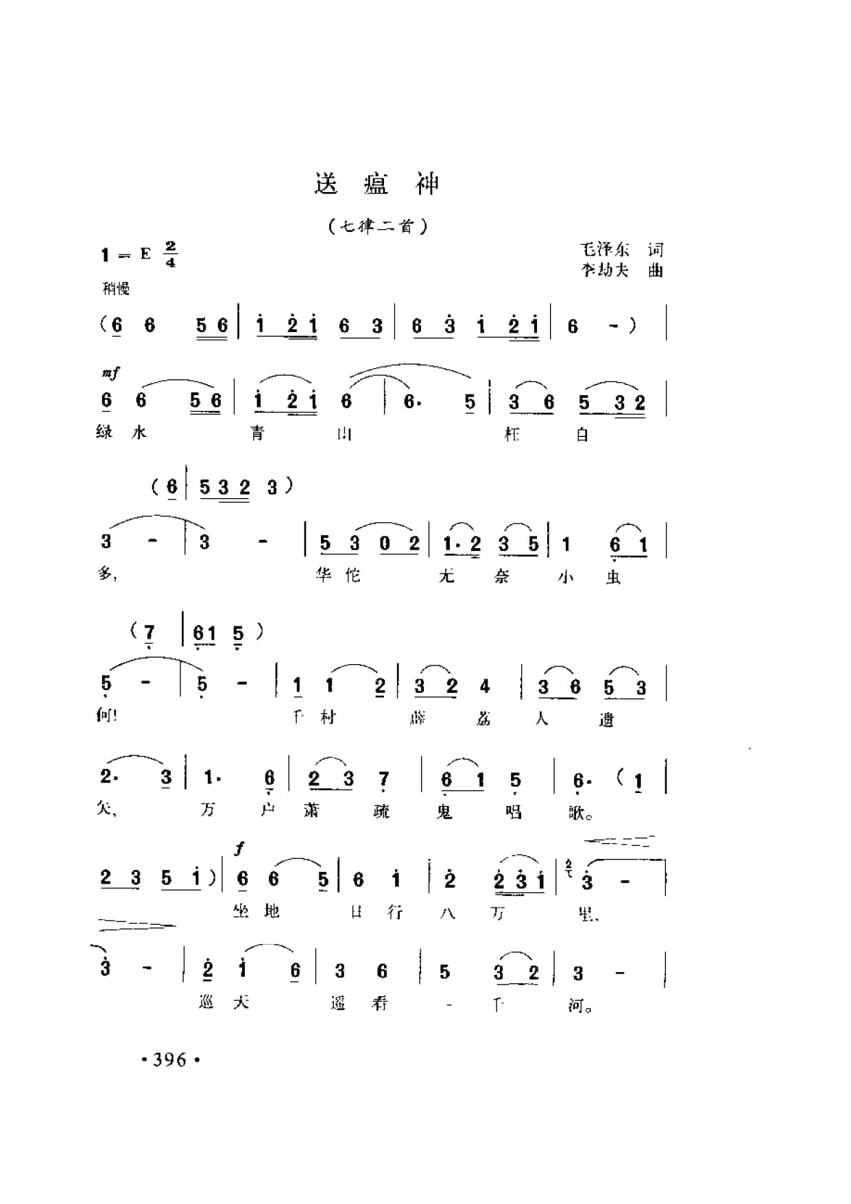 名称:送瘟神 七律二首 毛泽东词 李劫夫曲国家:中国分类:曲谱子类:歌谱乐谱类型:简谱/五线谱文件格式:jpg