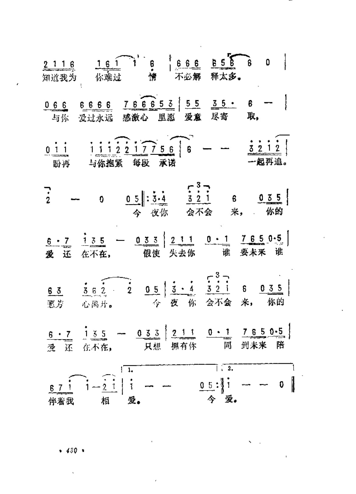 名称:今夜你会不会来 台湾 谢明训词 林东松曲国家:中国分类:曲谱子类:歌谱乐谱类型:简谱/五线谱文件格式:jpg