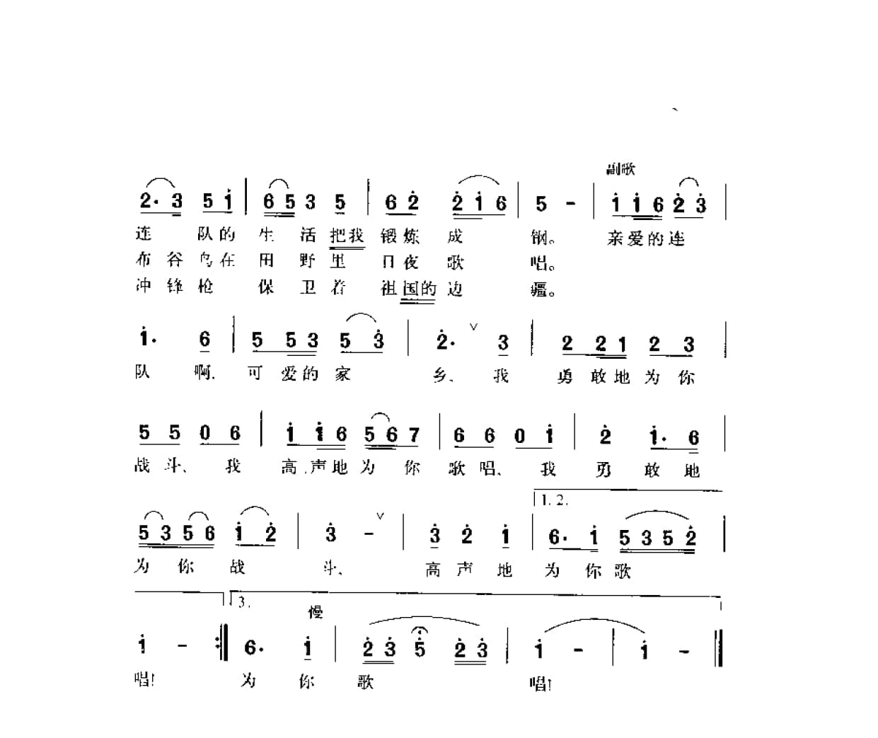 名称:我爱连队,我爱家乡 宫垂垒词 田光曲