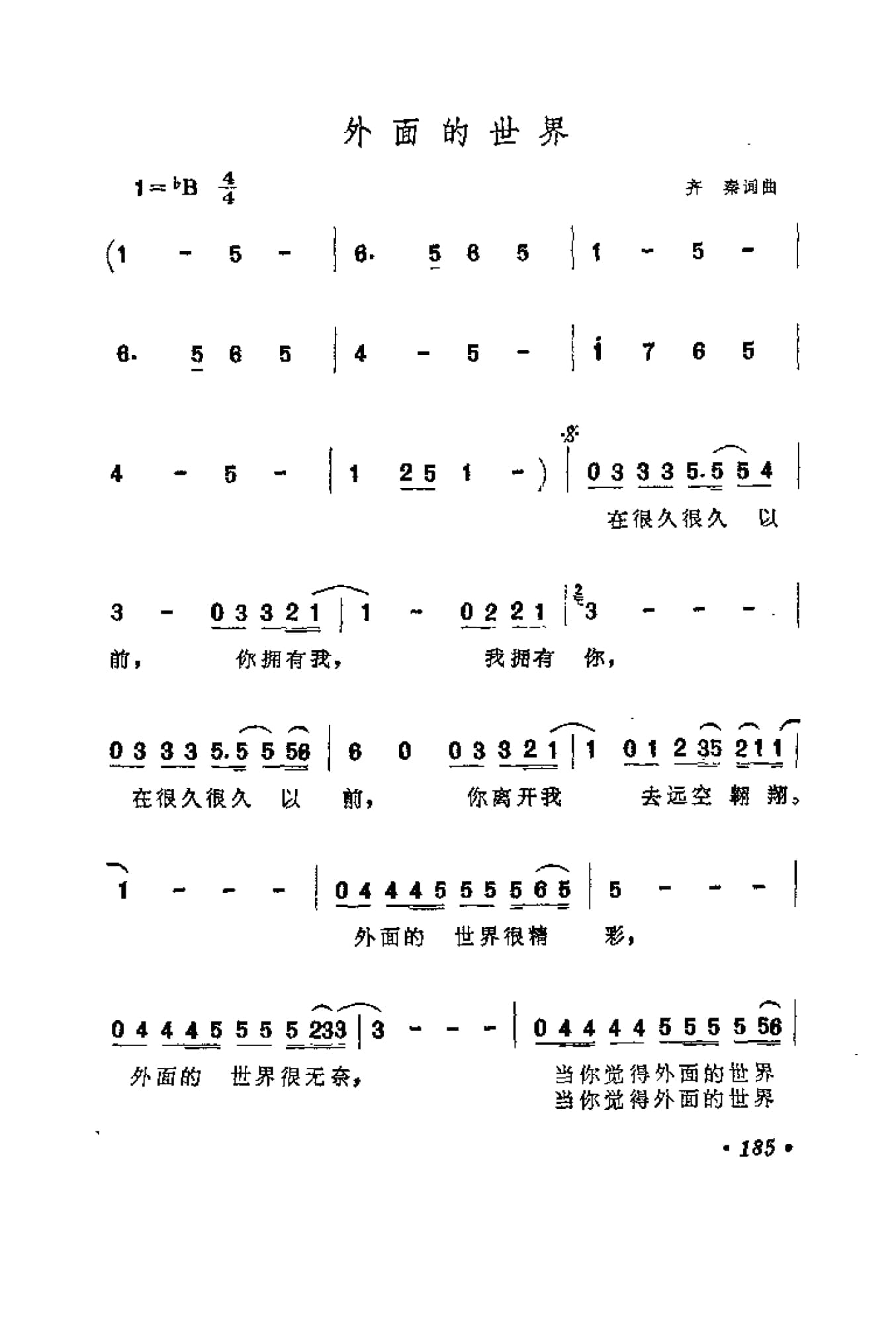 齐秦歌曲谱:外面的世界