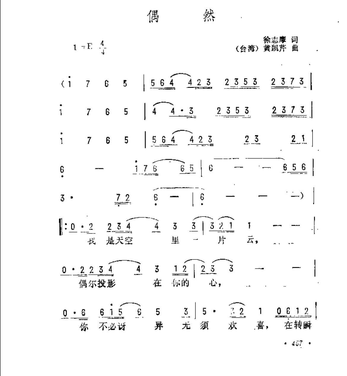 名称:偶然 徐志摩词 台湾 黄凯芹曲国家:中国分类:曲谱子类:歌谱乐谱类型:简谱/五线谱文件格式:jpg