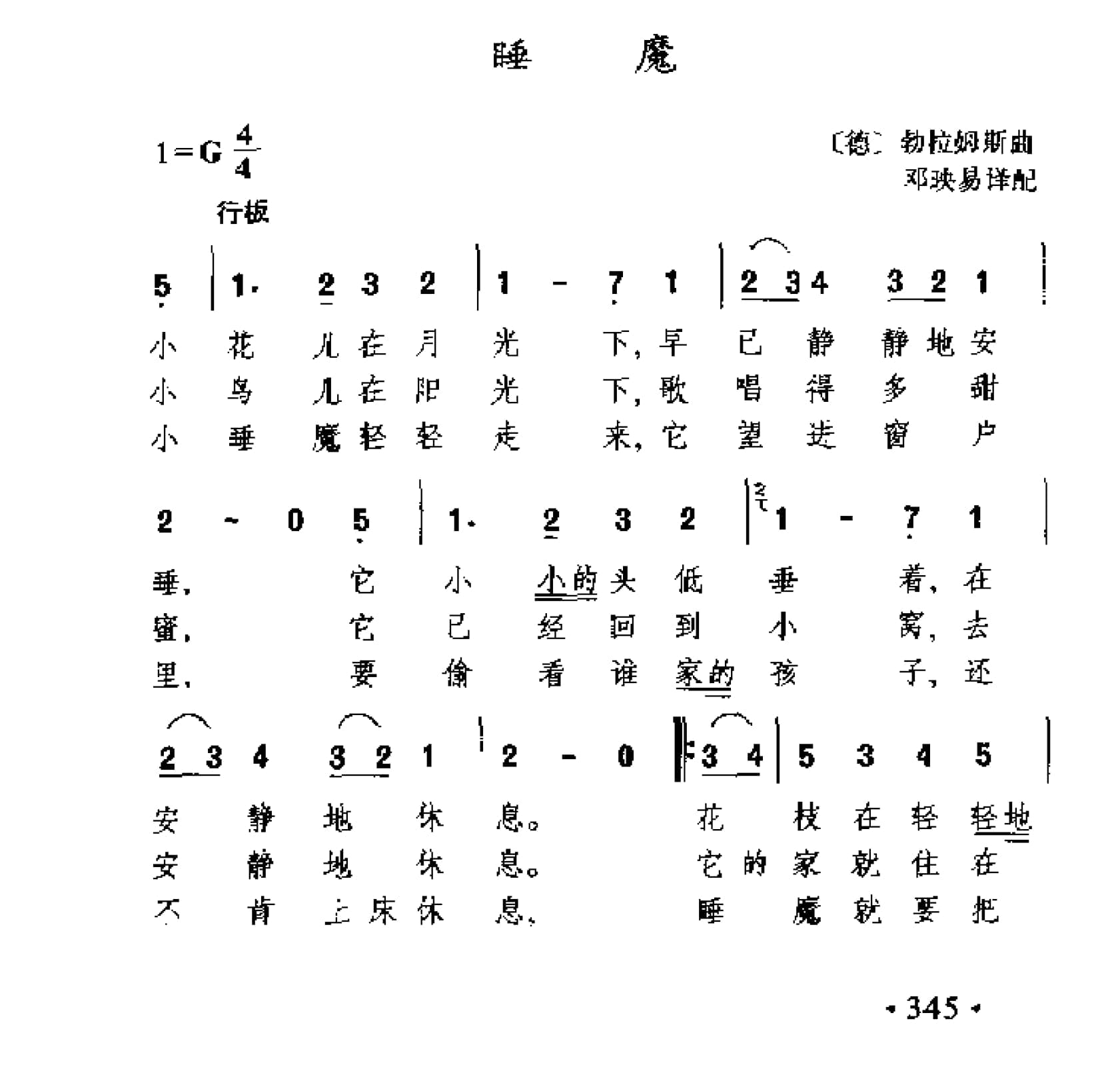 名称:外国古典歌曲简谱:睡魔 德 勃拉姆斯曲