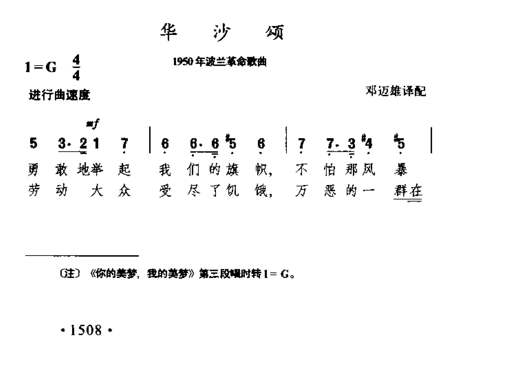 名称:华沙颂 波兰革命歌曲国家:波兰分类:曲谱子类:歌谱乐谱类型:简谱/五线谱文件格式:jpg
