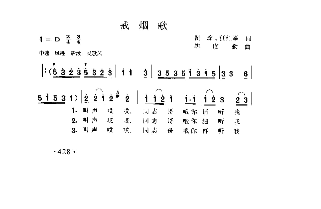 戒烟歌 瞿踪、任红举词 毕庶勘曲