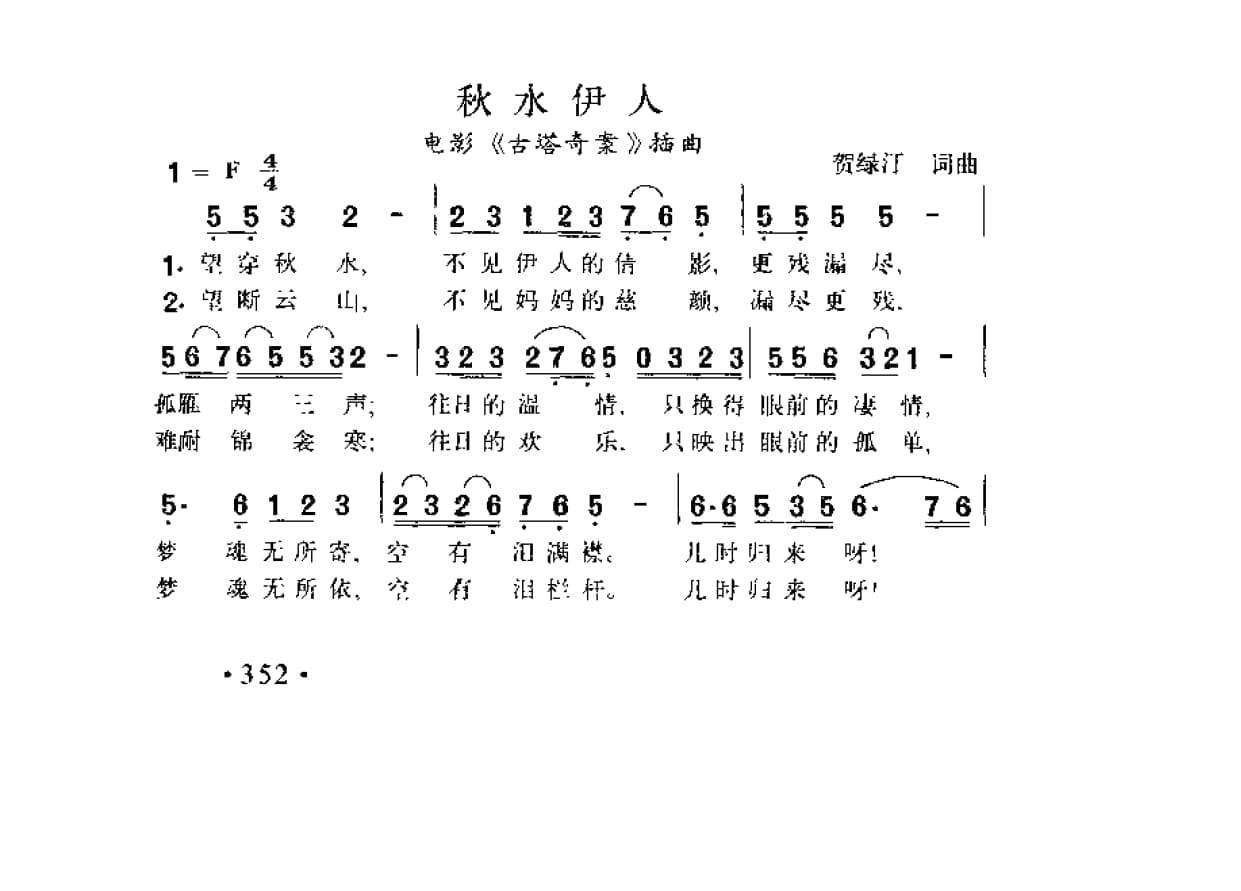 名称:秋水伊人 电影 古塔奇案 插曲 贺绿汀词曲