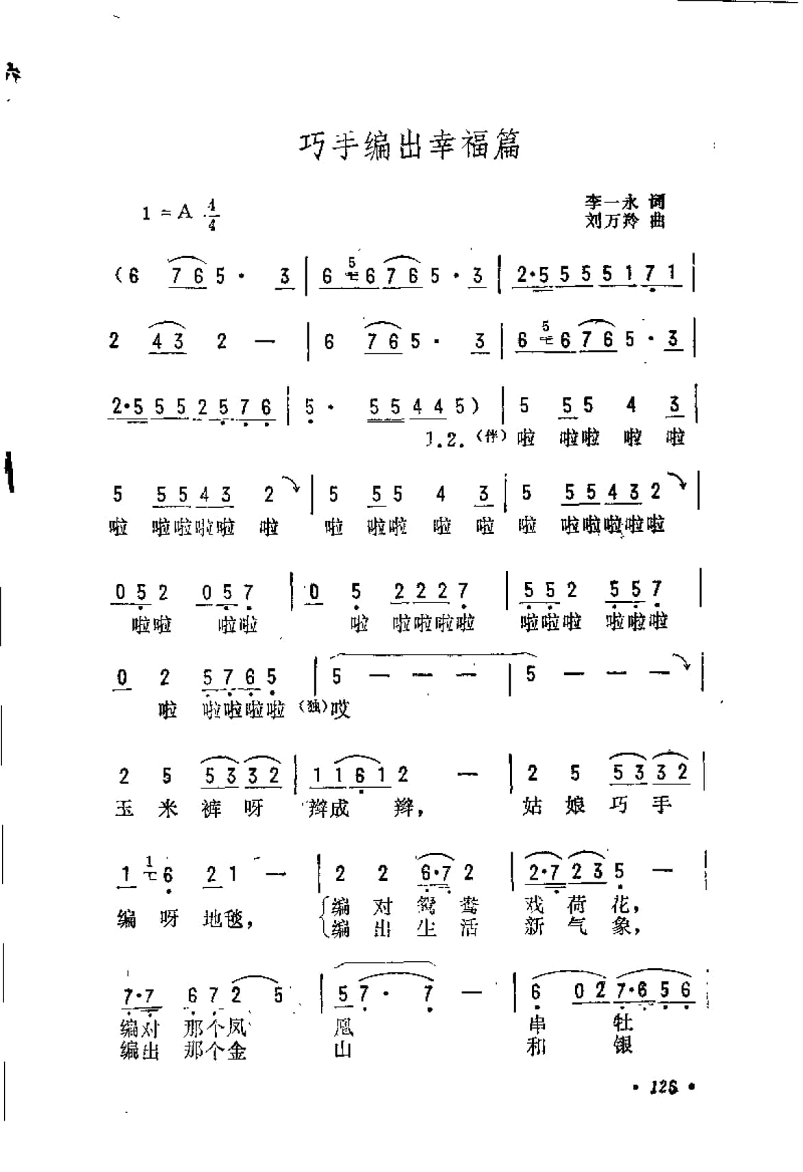 抒情歌曲简谱:巧手编出幸福篇 李一永词 刘万羚曲