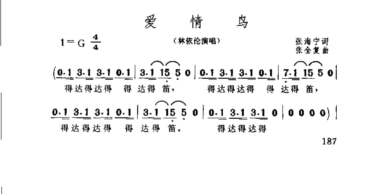 简谱:爱情鸟·1993张海宁词 张全复曲(林依伦演唱)