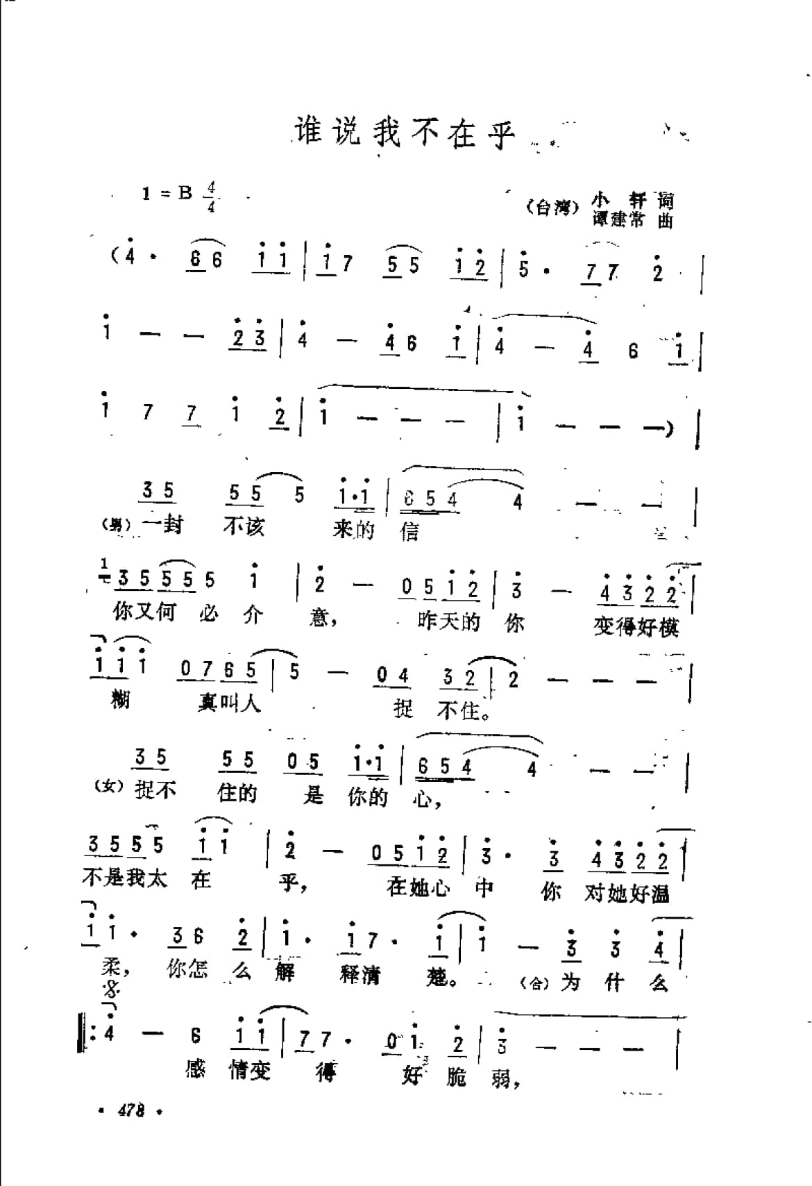 名称:谁说我不在乎 台湾 小轩词 谭建常曲国家:中国分类:曲谱子类:歌谱乐谱类型:简谱/五线谱文件格式:jpg