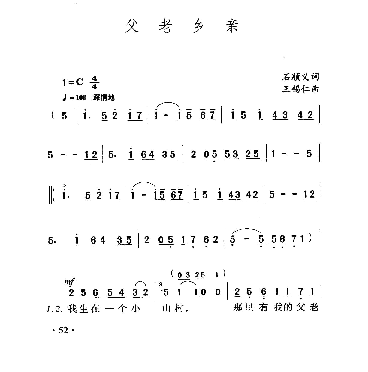 父老乡亲 石顺义词 王锡仁曲