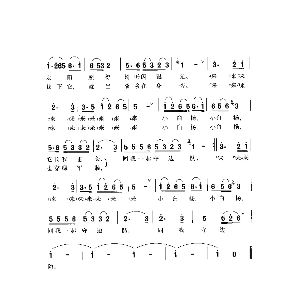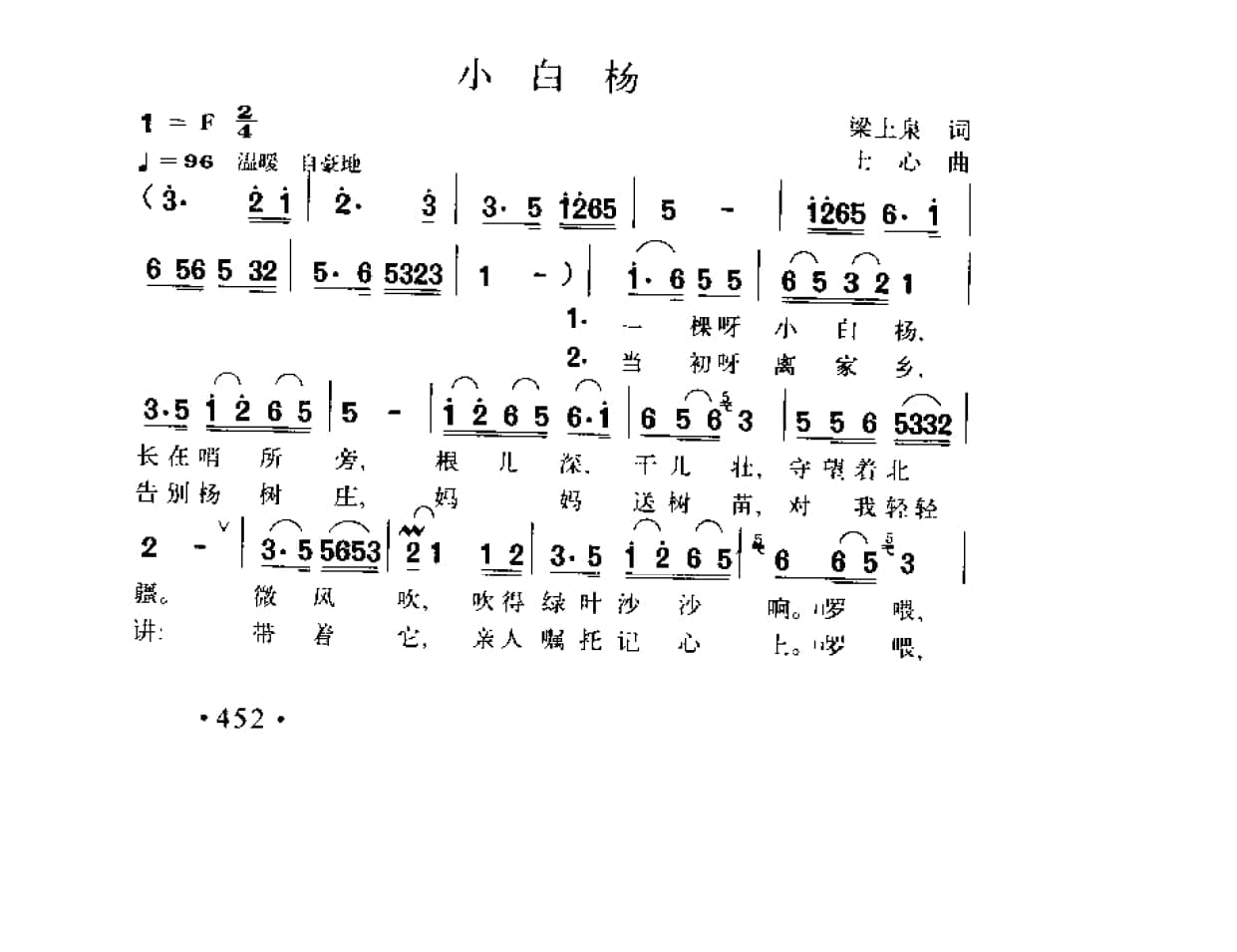名称:小白杨 染上泉词 士心曲国家:中国分类:曲谱子类:歌谱乐谱类型:简谱/五线谱文件格式:jpg