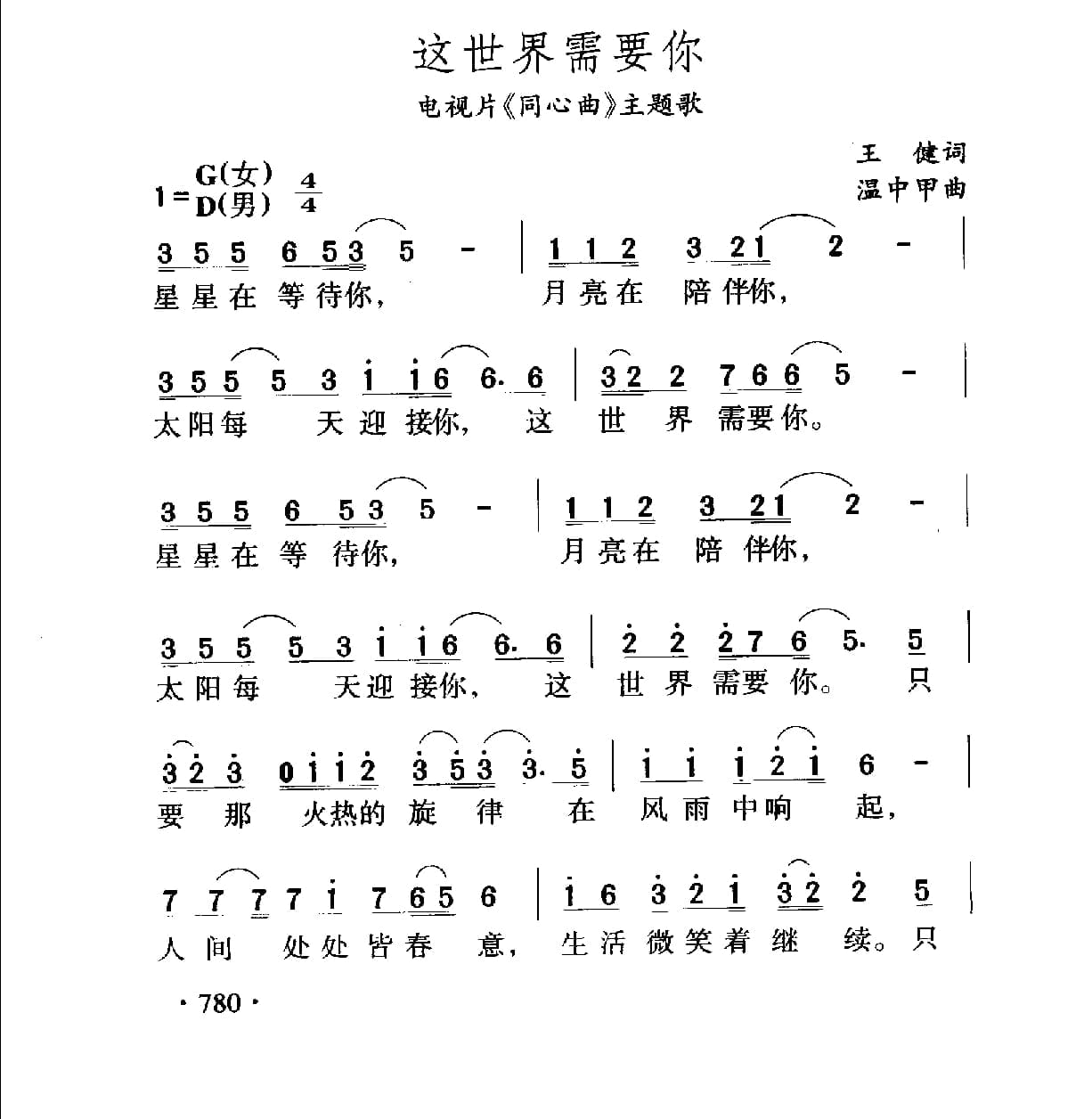 这世界需要你(电视片《同心曲》主题歌)王健词 网温中甲曲