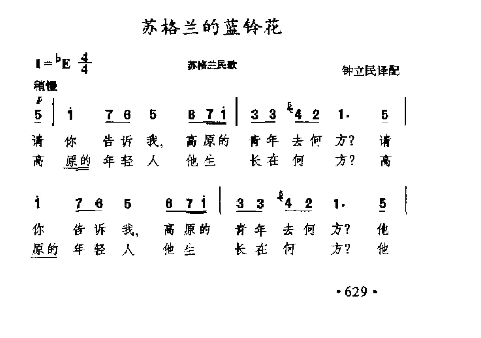 名称:民间歌曲简谱:苏格兰的蓝铃花 苏格兰民歌国家:中国分类:曲谱子类:歌谱乐谱类型:简谱专辑系列:民间歌曲简谱文件格式:jpg