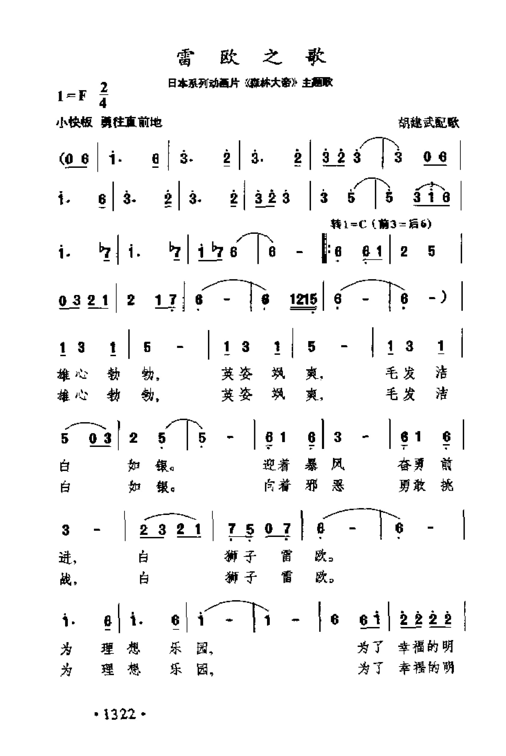 名称:雷欧之歌 日本系列动画片 森林天帝 主题歌国家:日本分类:曲谱子类:歌谱乐谱类型:简谱/五线谱文件格式:jpg