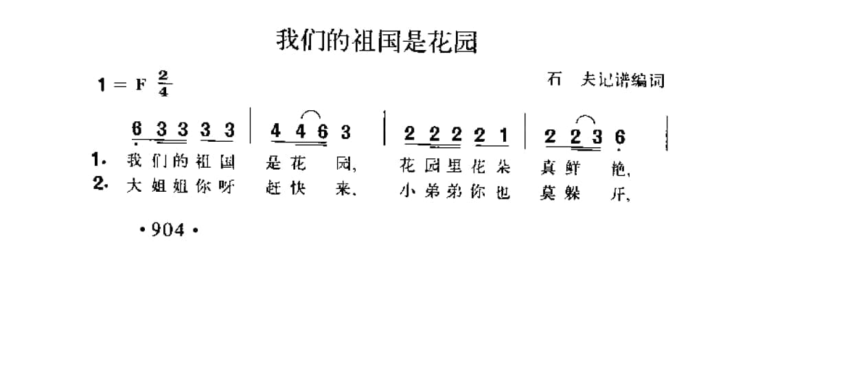 我们的祖国是花园 石夫记谱编词