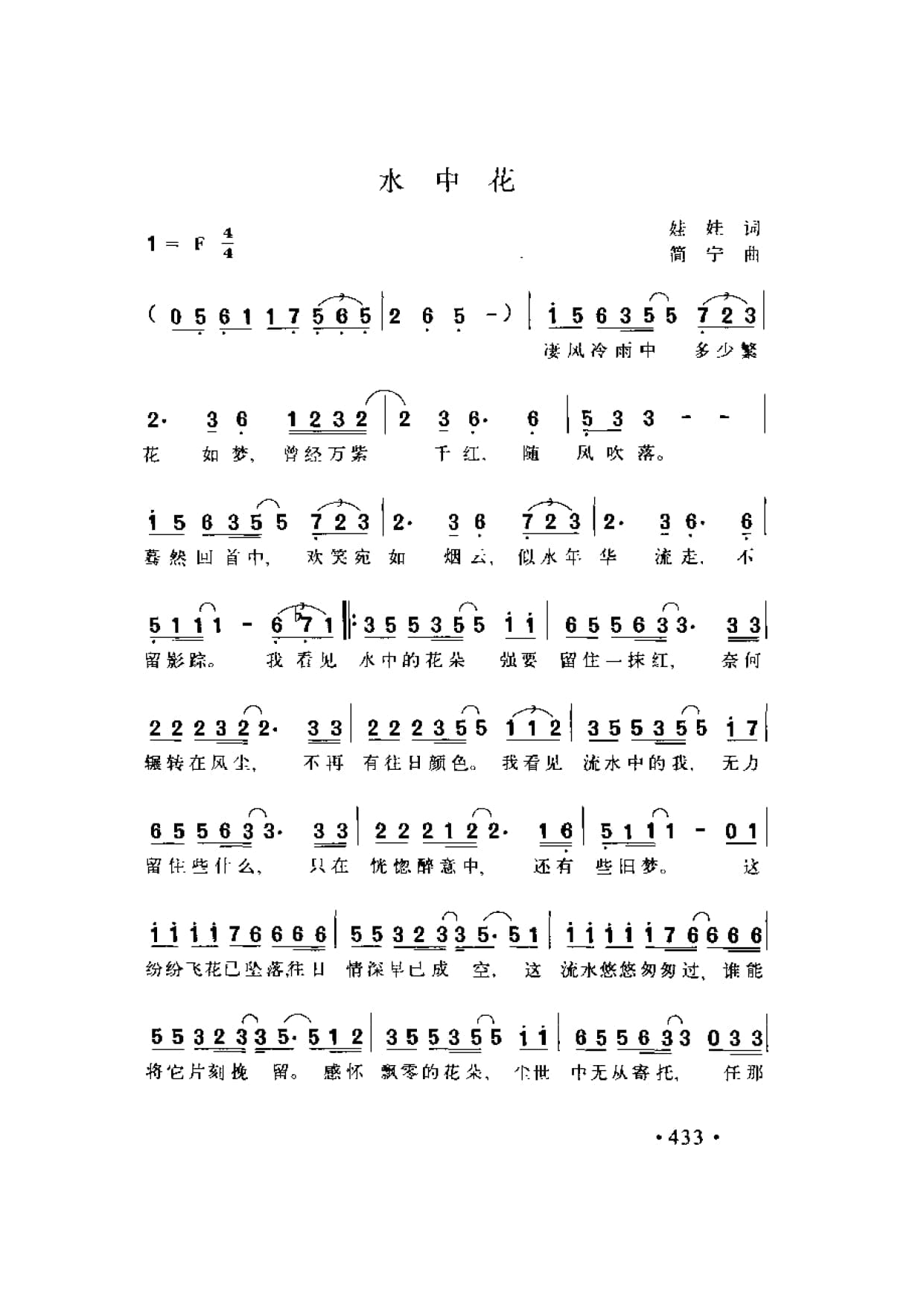 名称:水中花 娃娃词 简宁曲国家:中国分类:曲谱子类:歌谱乐谱类型:简谱/五线谱文件格式:jpg