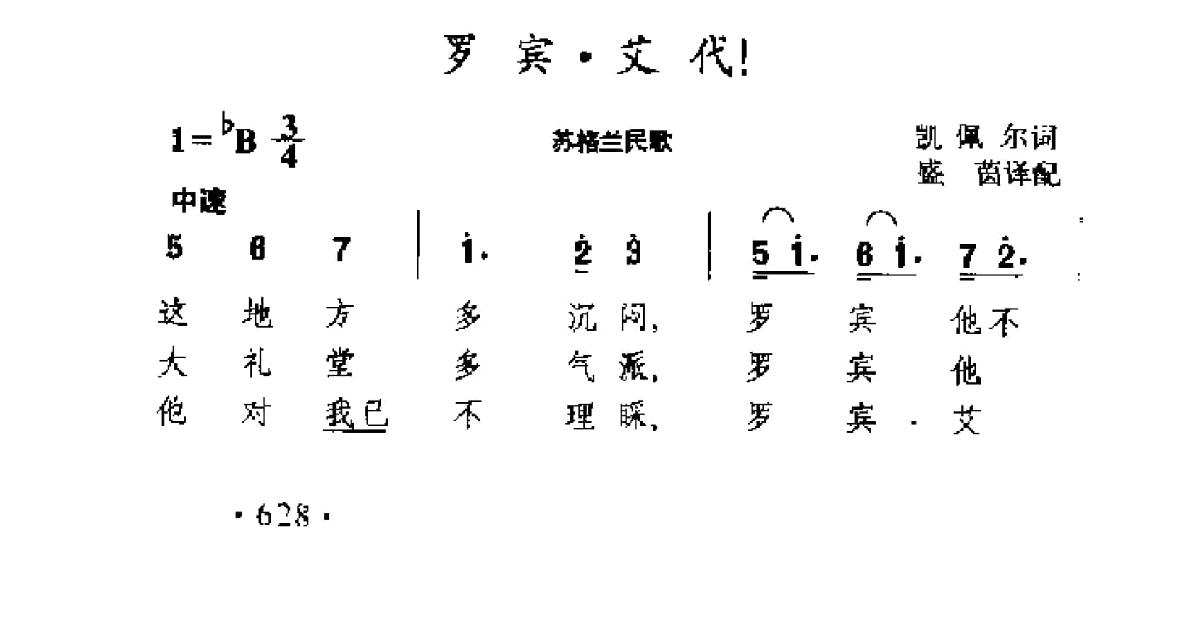 名称:民间歌曲简谱:罗宾.艾代 苏格兰民歌