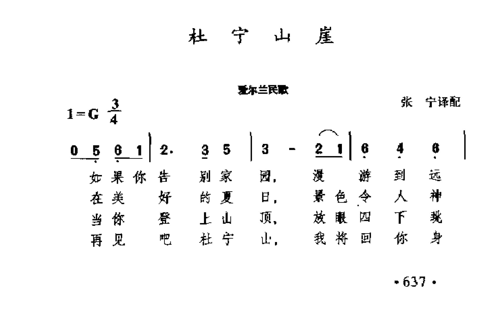 名称:民间歌曲简谱:杜宁山崖 爱尔兰民歌