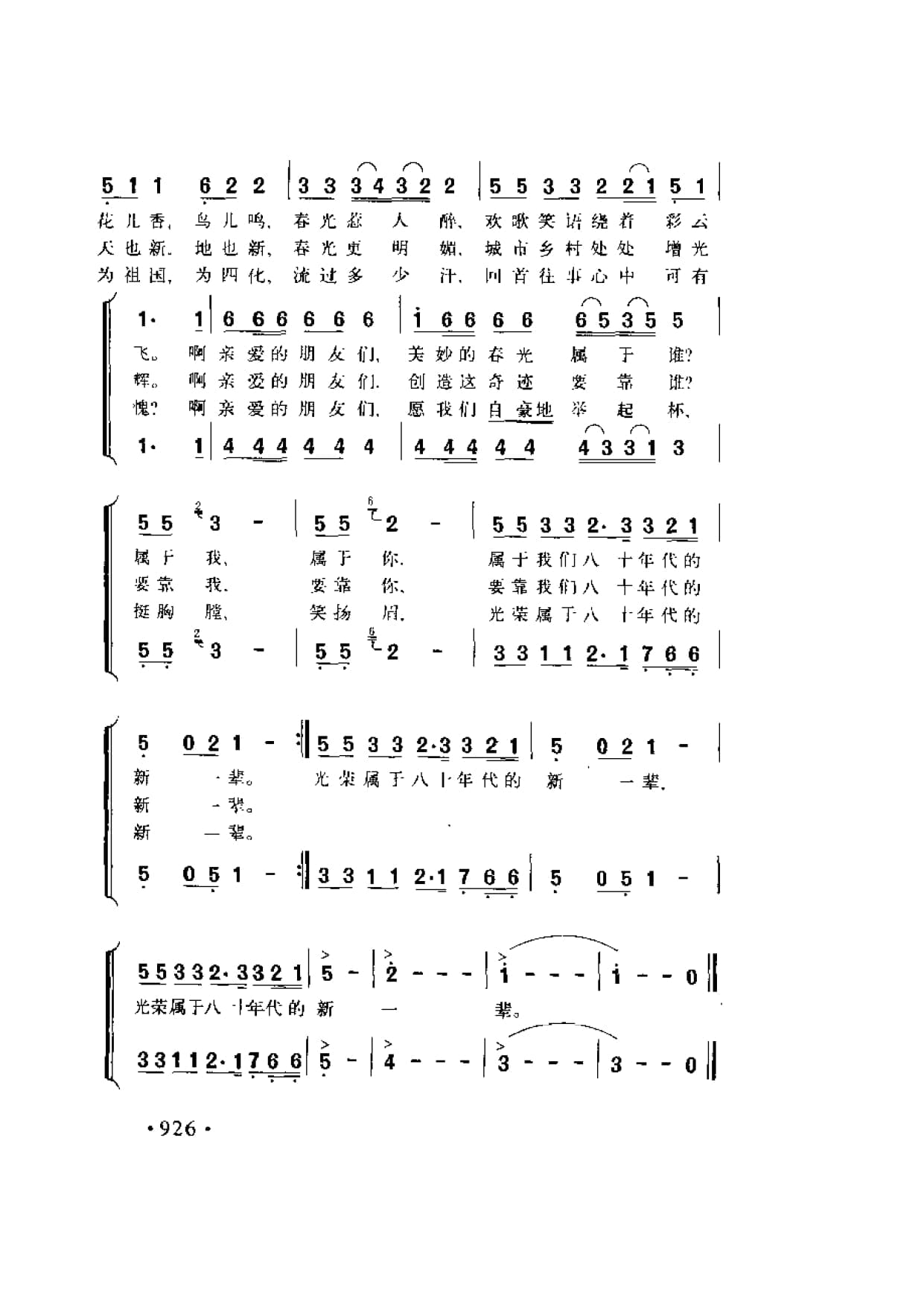 年轻的朋友来相会 张枚同词 谷建芬曲
