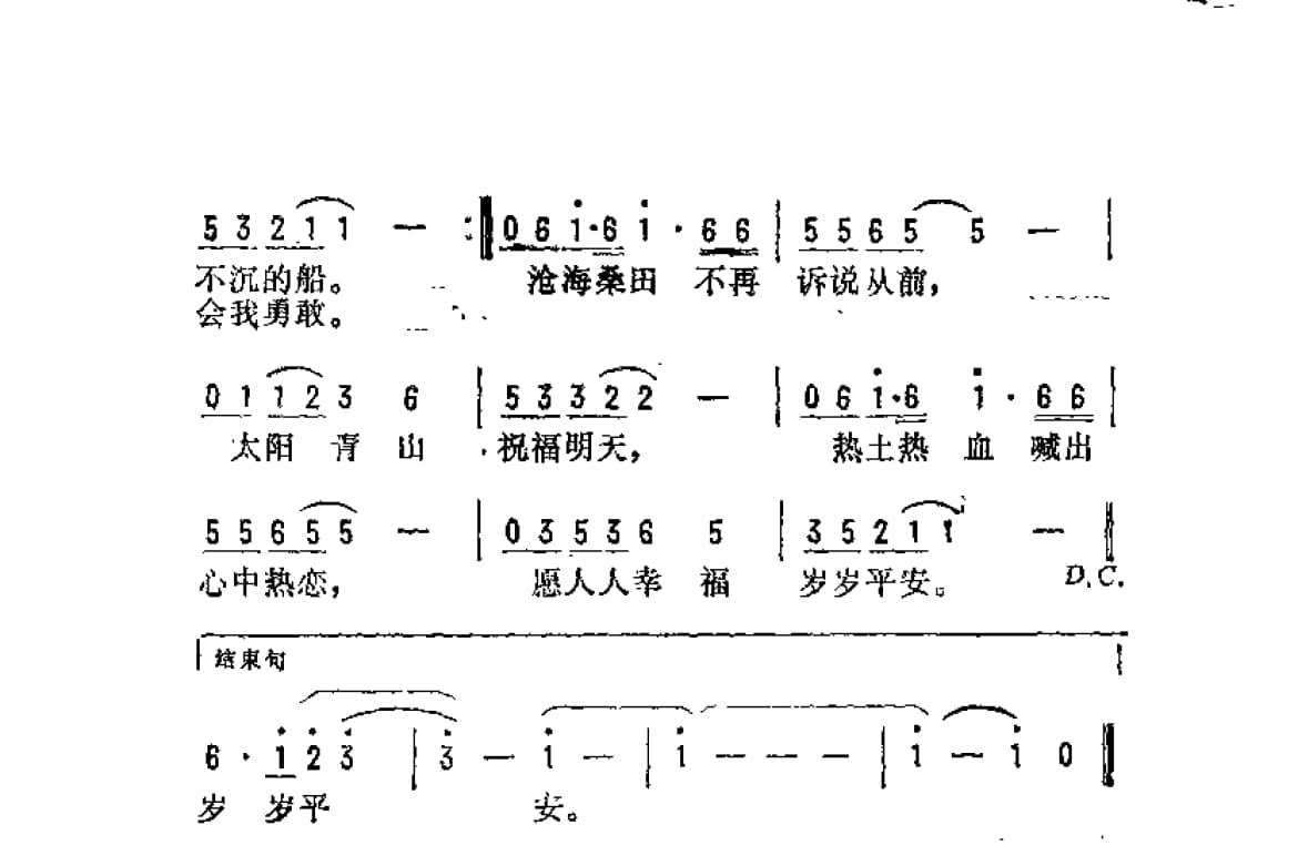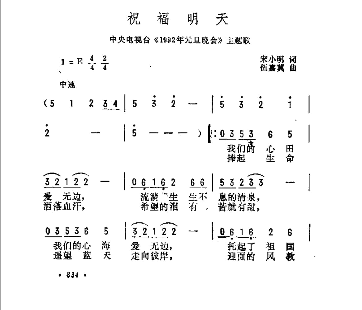 名称:祝福明天 中央电视台 1992年元旦晚会 主题歌 宋小明词 伍嘉冀曲国家:中国分类:曲谱子类:歌谱乐谱类型:简谱/五线谱文件格式:jpg祝福明天(中央电视台《1992年元旦晚会》主题歌)宋小明词 伍嘉冀曲
