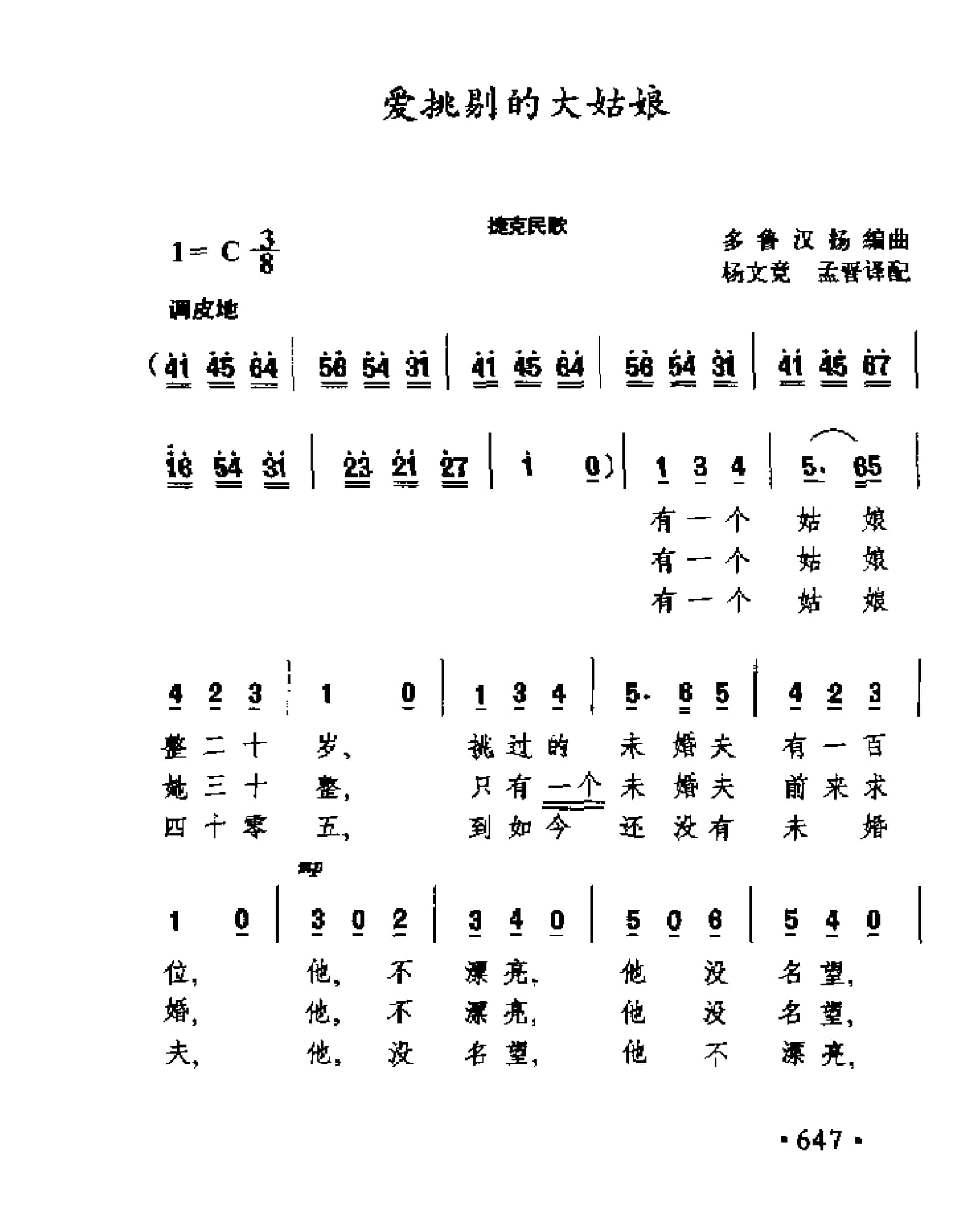 名称:民间歌曲简谱:爱挑剔的大姑娘 捷克民歌