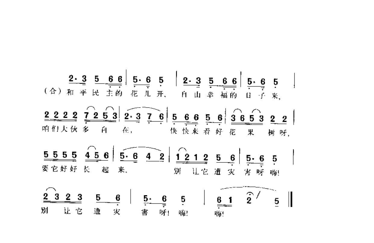 名称:别让它遭灾害 蒙沙词 李淦曲国家:中国分类:曲谱子类:歌谱乐谱类型:简谱/五线谱文件格式:jpg