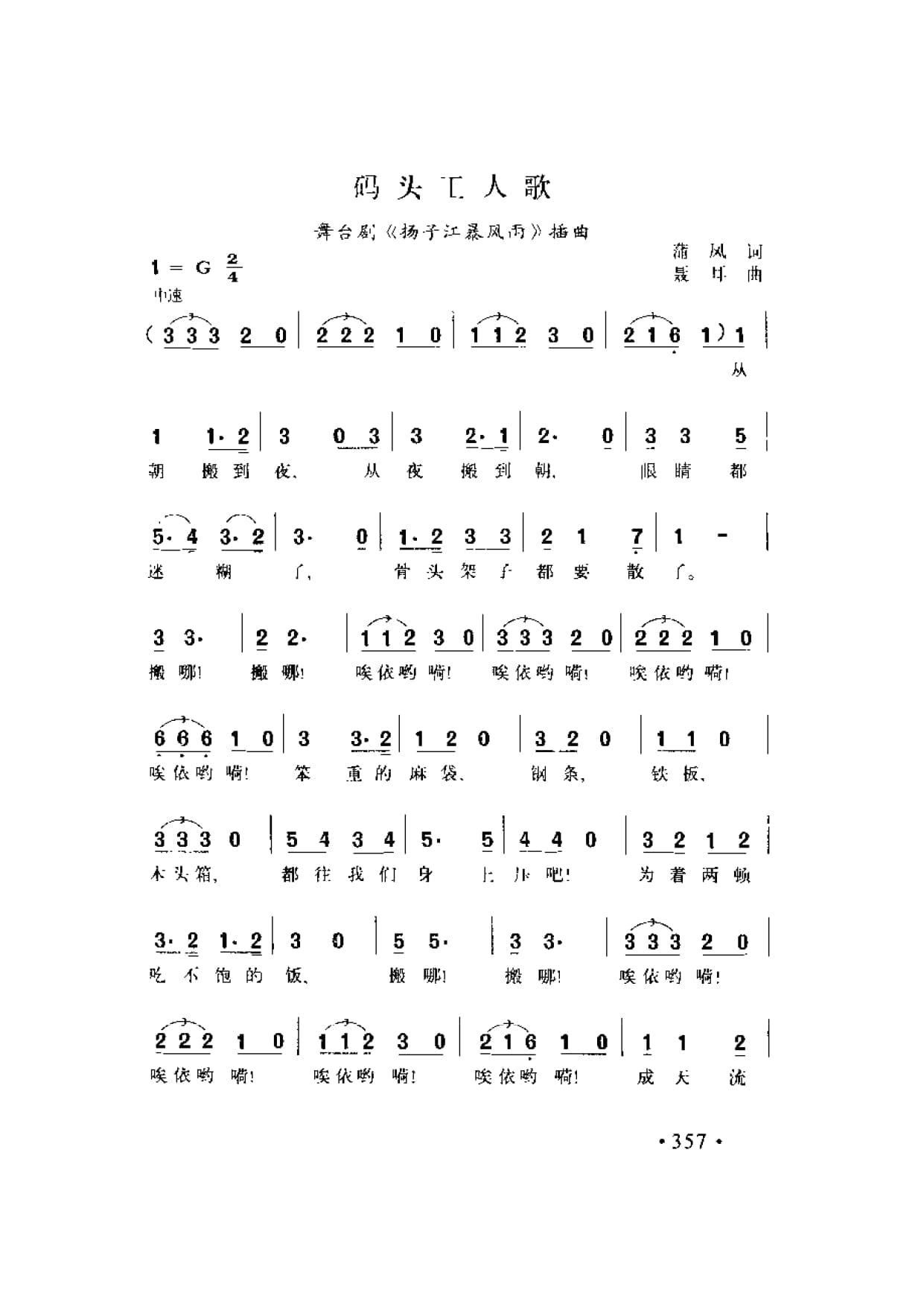 名称:码头工人歌 舞台剧 扬子江暴凤雨 插曲 蒲风词 聂耳曲