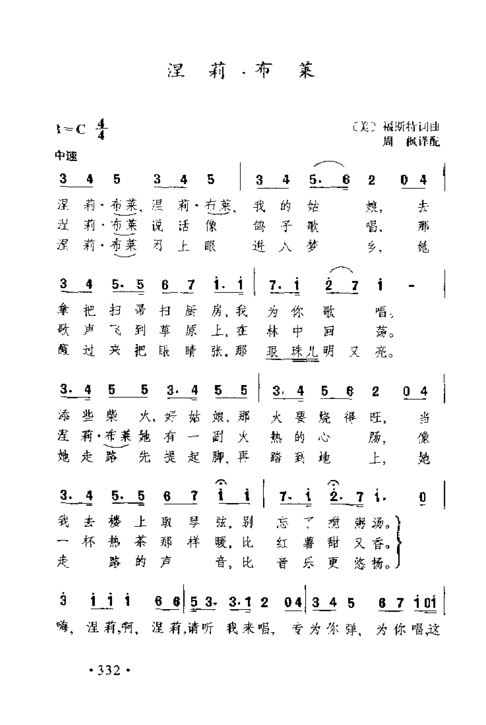 名称:外国古典歌曲简谱:涅莉 布莱 美 福斯特曲