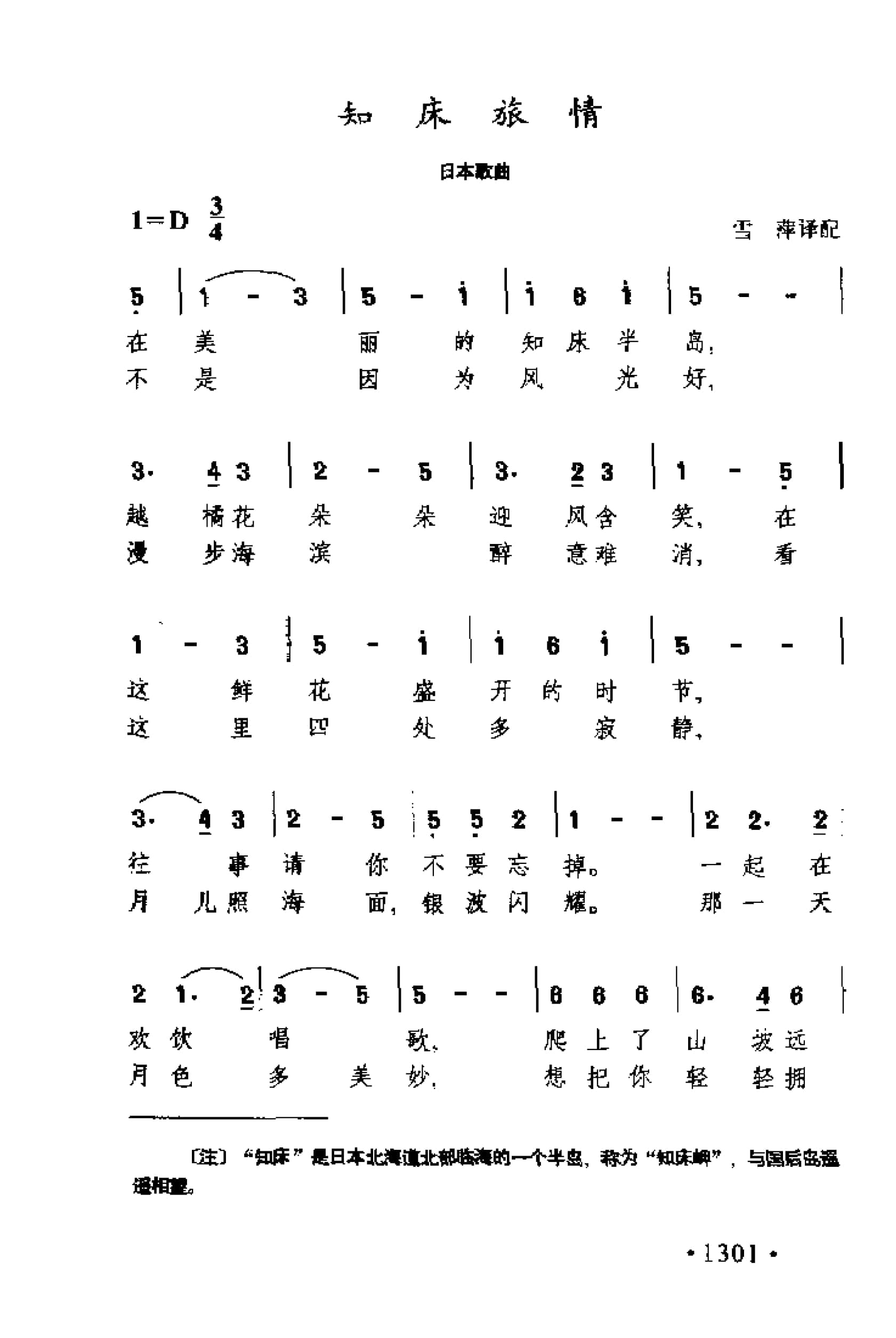 名称:知床旅情 日本歌曲国家:日本分类:曲谱子类:歌谱乐谱类型:简谱/五线谱文件格式:jpg