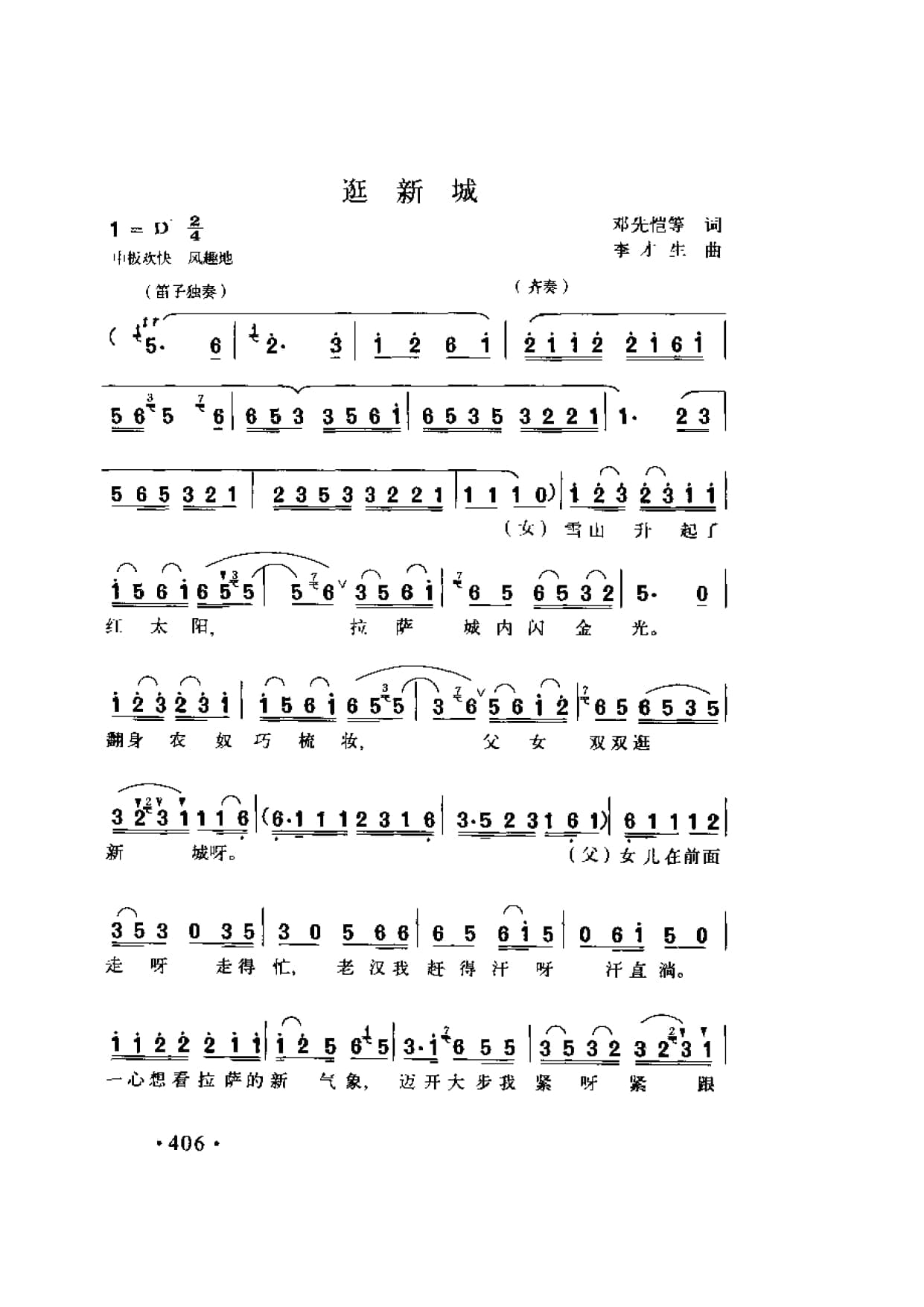 名称:逛新城 邓先恺等词 李才生曲国家:中国分类:曲谱子类:歌谱乐谱类型:简谱/五线谱文件格式:jpg