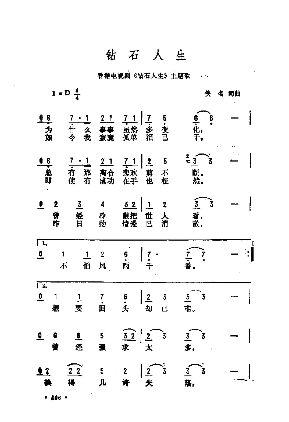 名称:钻石人生 香港电视剧 钻石人生 主题歌 佚名词曲国家:中国分类:曲谱子类:歌谱乐谱类型:简谱/五线谱文件格式:jpg