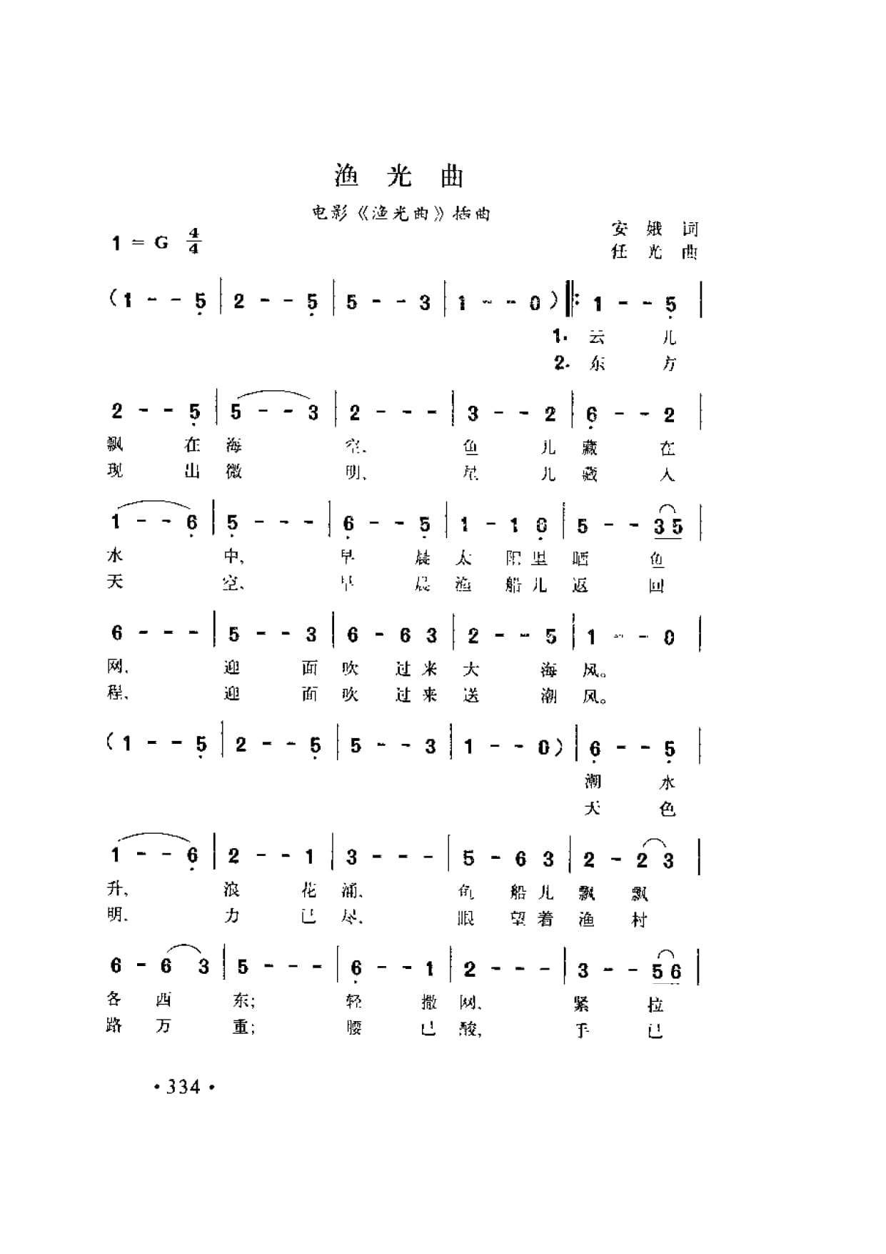 名称:渔光曲 电影 渔光曲 插曲 安娥词 任光曲国家:中国分类:曲谱子类:歌谱乐谱类型:简谱/五线谱文件格式:jpg
