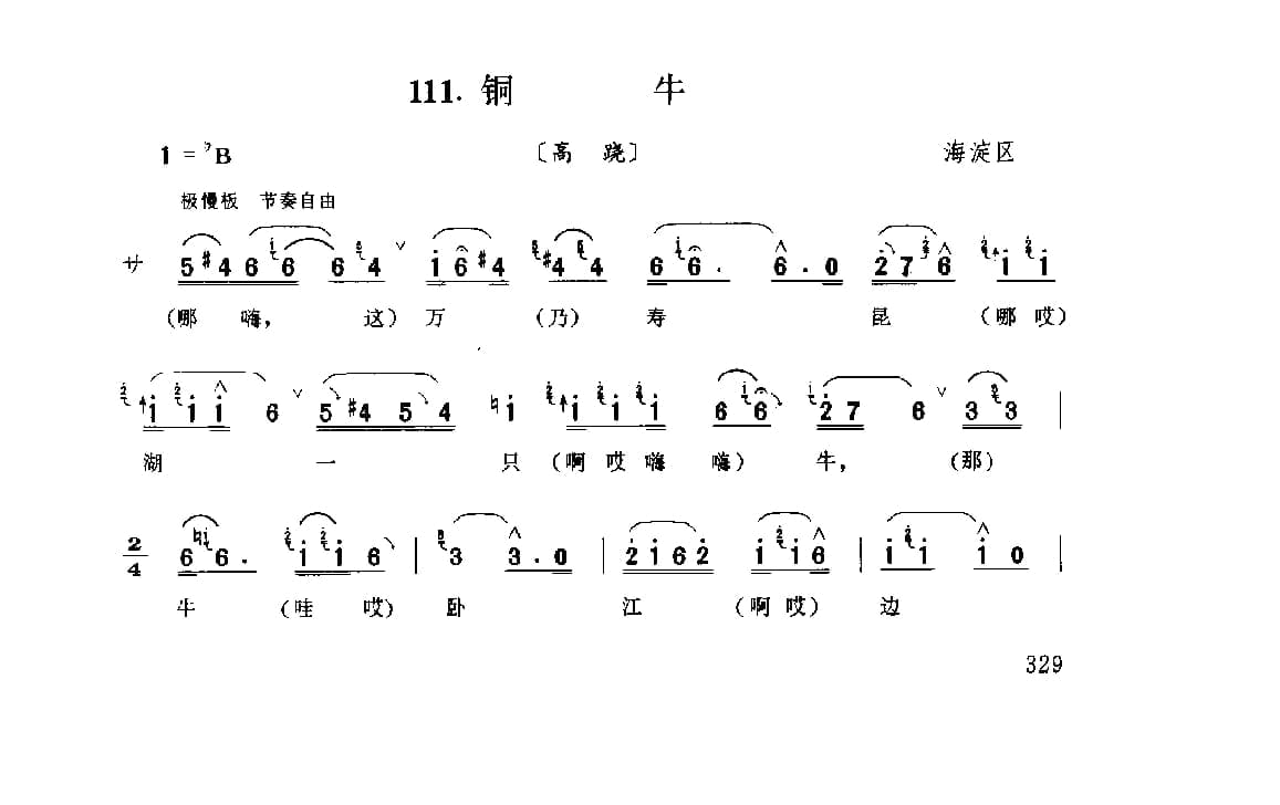 花会歌:铜牛 海淀区(北京民间歌曲简谱)