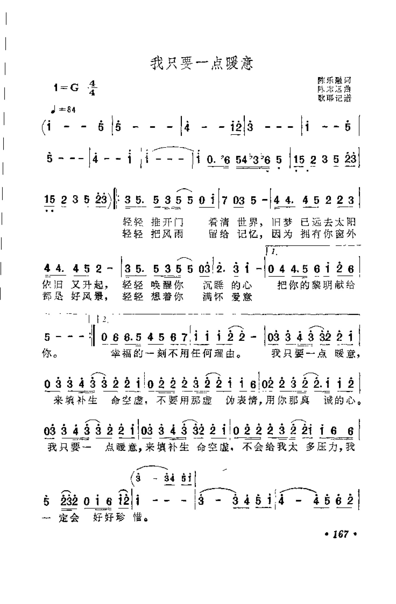 名称:苏芮歌曲谱:我只要一点暖意国家:中国分类:曲谱子类:歌谱乐谱类型:简谱/五线谱文件格式:jpg