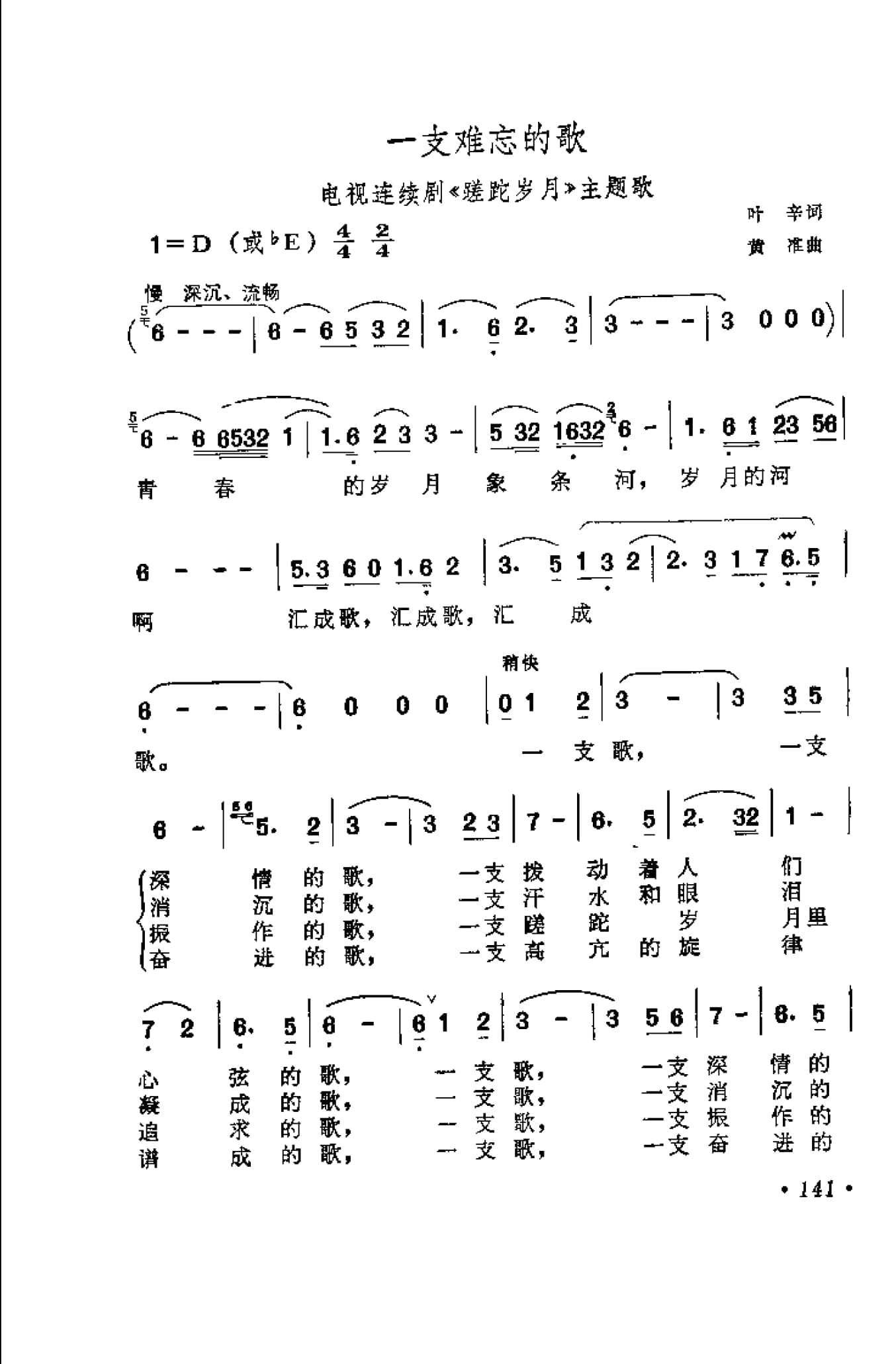 影视剧曲谱:一支难忘的歌(电视连续剧《蹉跎岁月》主题歌)