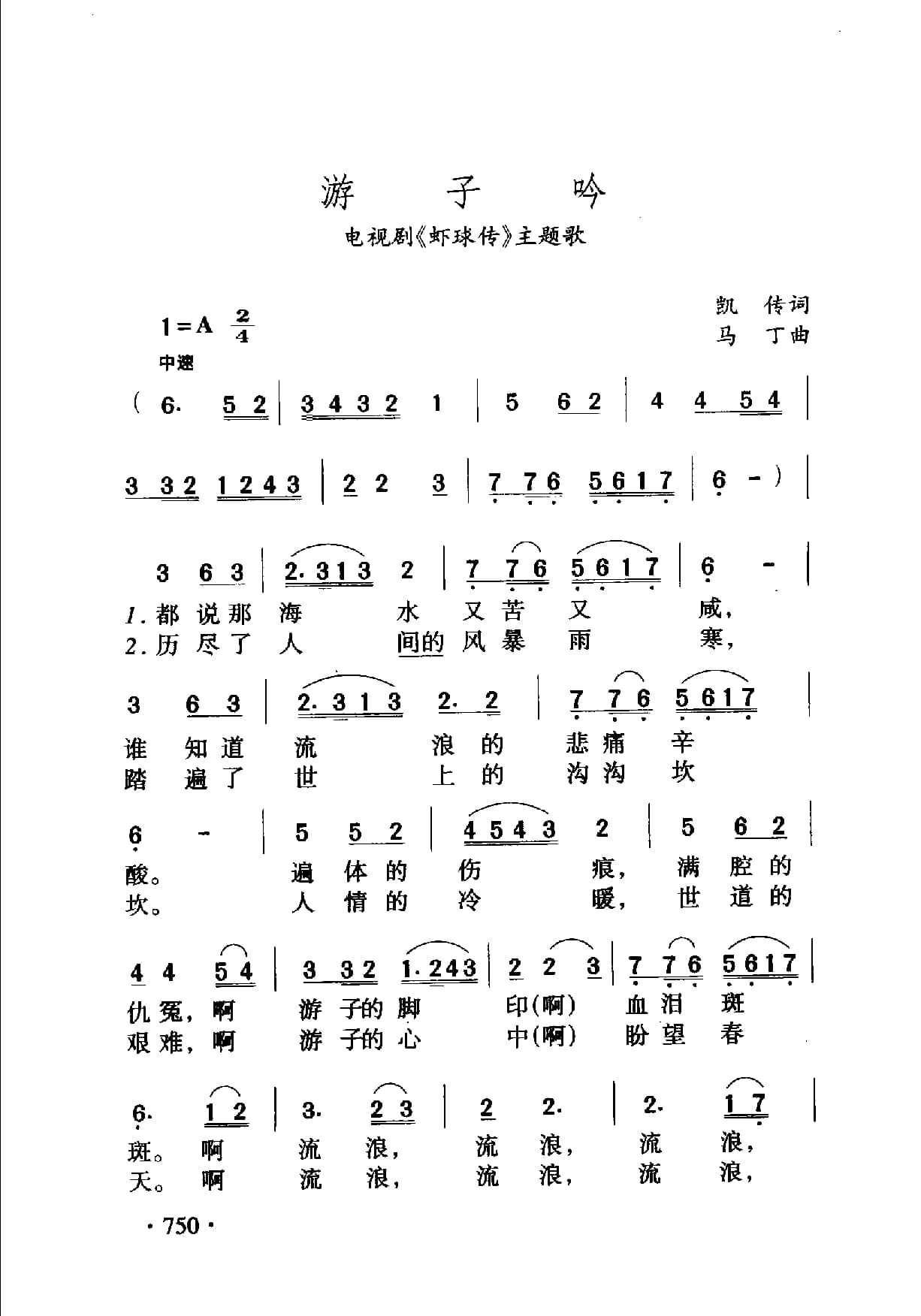 名称:游子吟 电视剧 虾球传 主题歌 凯传词 马丁曲国家:中国分类:曲谱子类:歌谱乐谱类型:简谱/五线谱文件格式:jpg