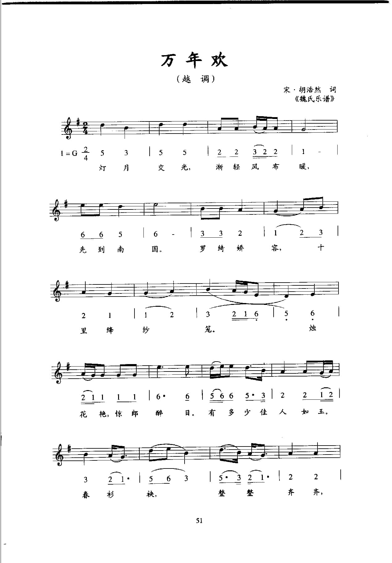 名称:唐宋词古乐谱:万年欢 宋 胡浩然 五线谱