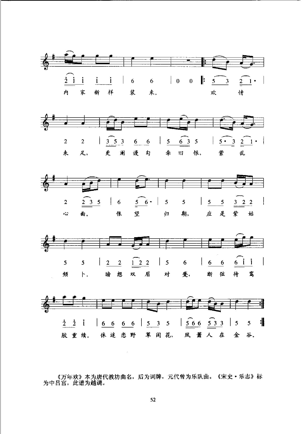 名称:唐宋词古乐谱:万年欢 宋 胡浩然 五线谱国家:中国分类:曲谱子类:歌谱乐谱类型:五线谱专辑系列:唐宋词古乐谱文件格式:jpg