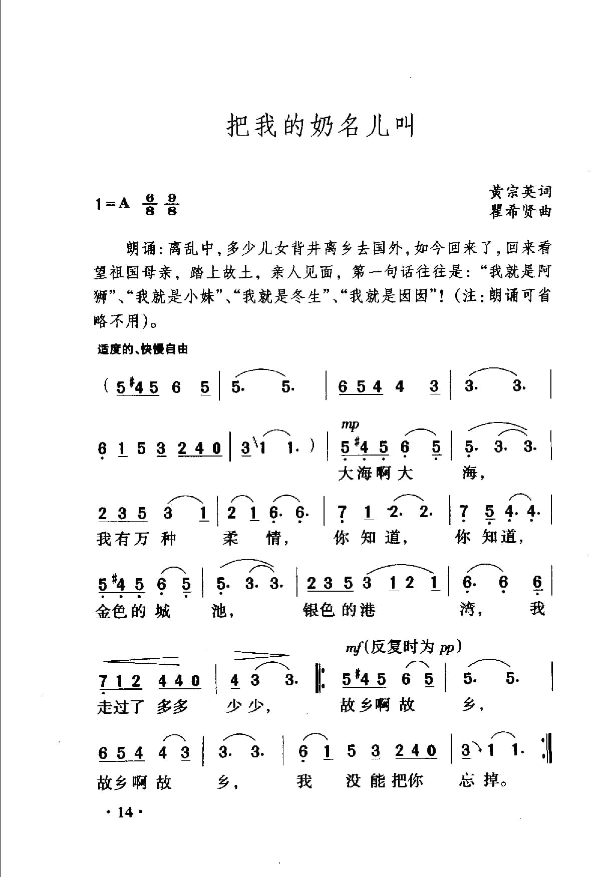 名称:中国名歌500首乐谱:把我的奶名儿叫黄宗英词瞿希贤曲国家:中国分类:曲谱子类:歌谱乐谱类型:简谱/五线谱专辑系列:中国名歌500首乐谱文件格式:jpg中国名歌500首乐谱:把我的奶名儿叫黄宗英词瞿希贤曲