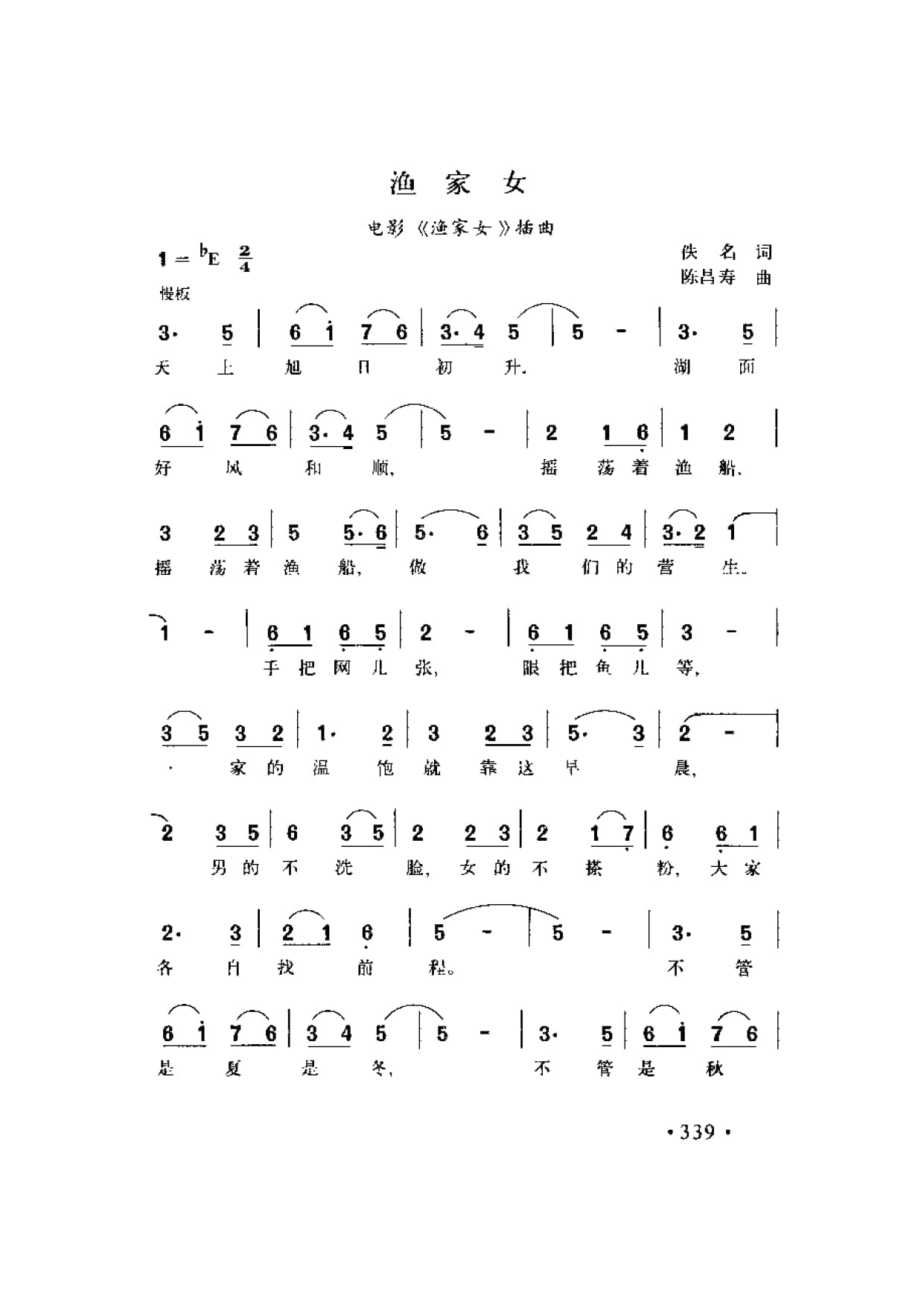 名称:渔家女 电影 渔家女 插曲 佚名词 陈昌寿曲