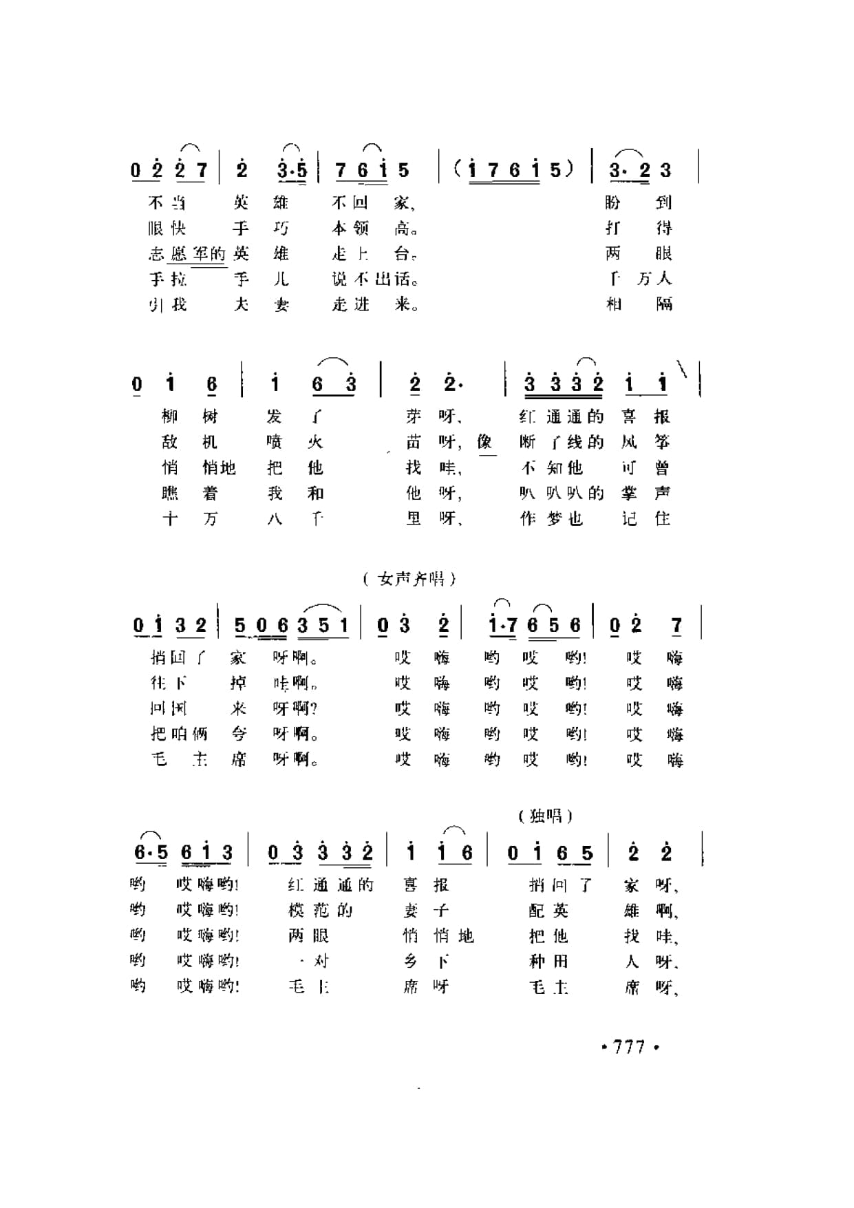 我的丈夫是英雄 张永枚词 孙凤举、沙石、曹俊山曲