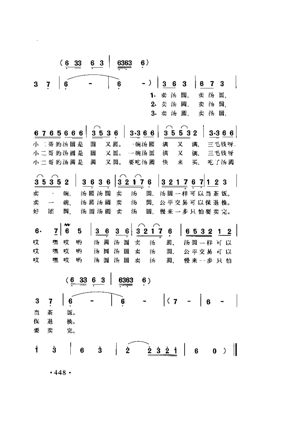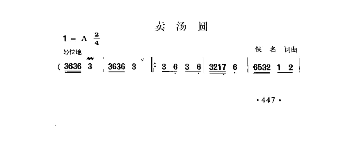 名称:卖汤圆 佚名词曲国家:中国分类:曲谱子类:歌谱乐谱类型:简谱/五线谱文件格式:jpg