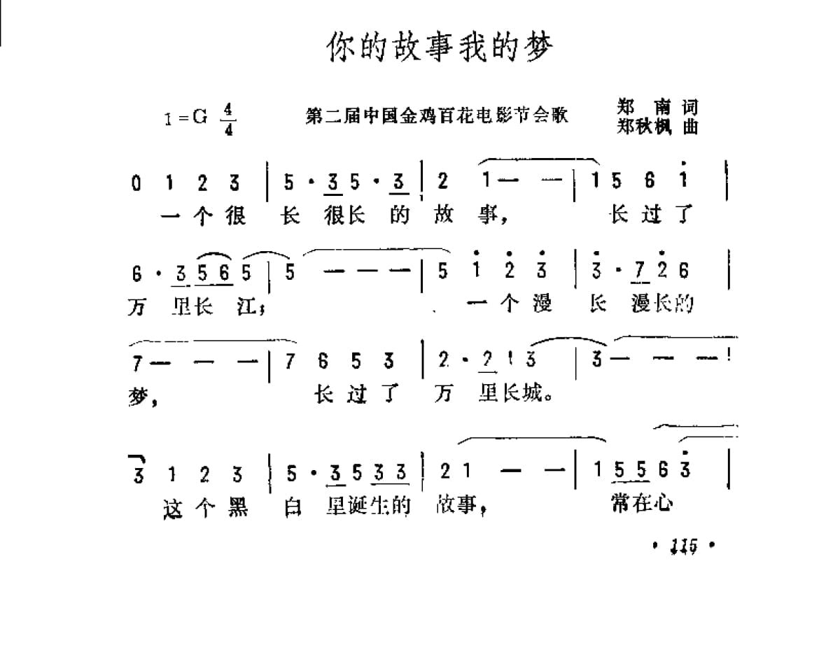 名称:抒情歌曲简谱:你的故事我的梦 郑南词 郑秋枫曲国家:中国分类:曲谱子类:歌谱乐谱类型:简谱专辑系列:抒情歌曲简谱文件格式:jpg