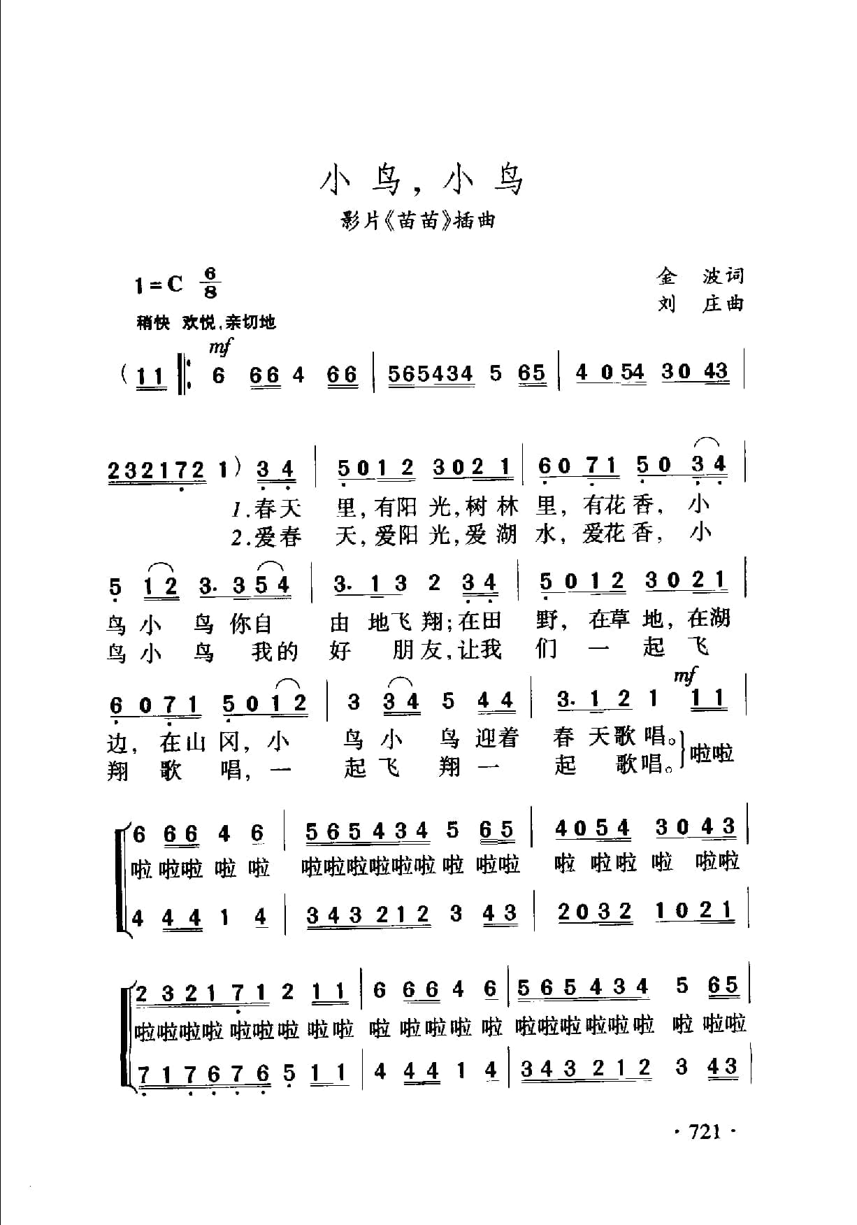 小鸟,小鸟(彩片《苗苗》插曲)金波词 刘庄曲
