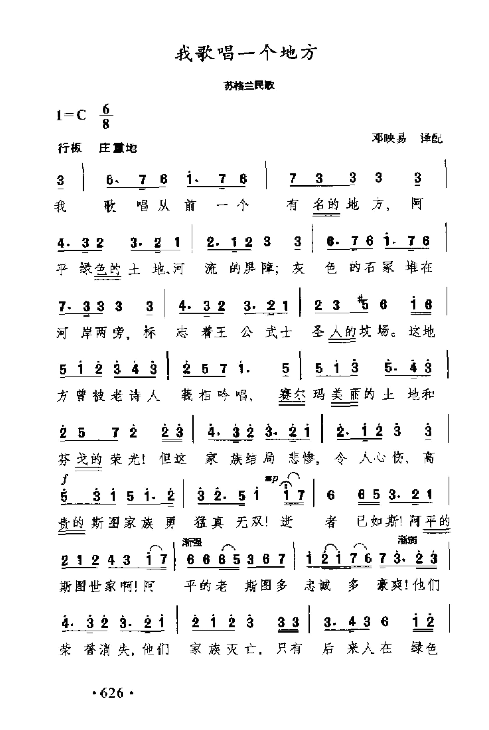 民间歌曲简谱:我歌唱一个地方 苏格兰民歌
