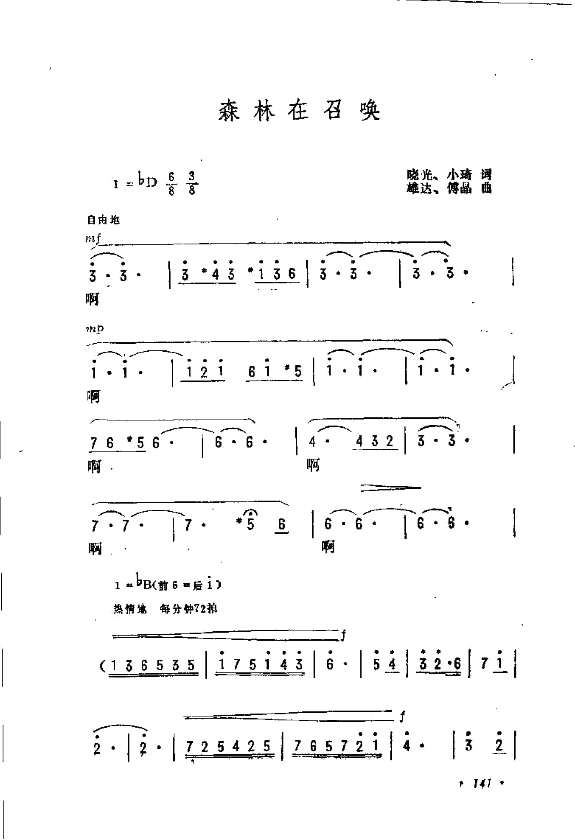 抒情歌曲简谱:森林在召唤 晓光、小琦词 雄达、傅晶曲