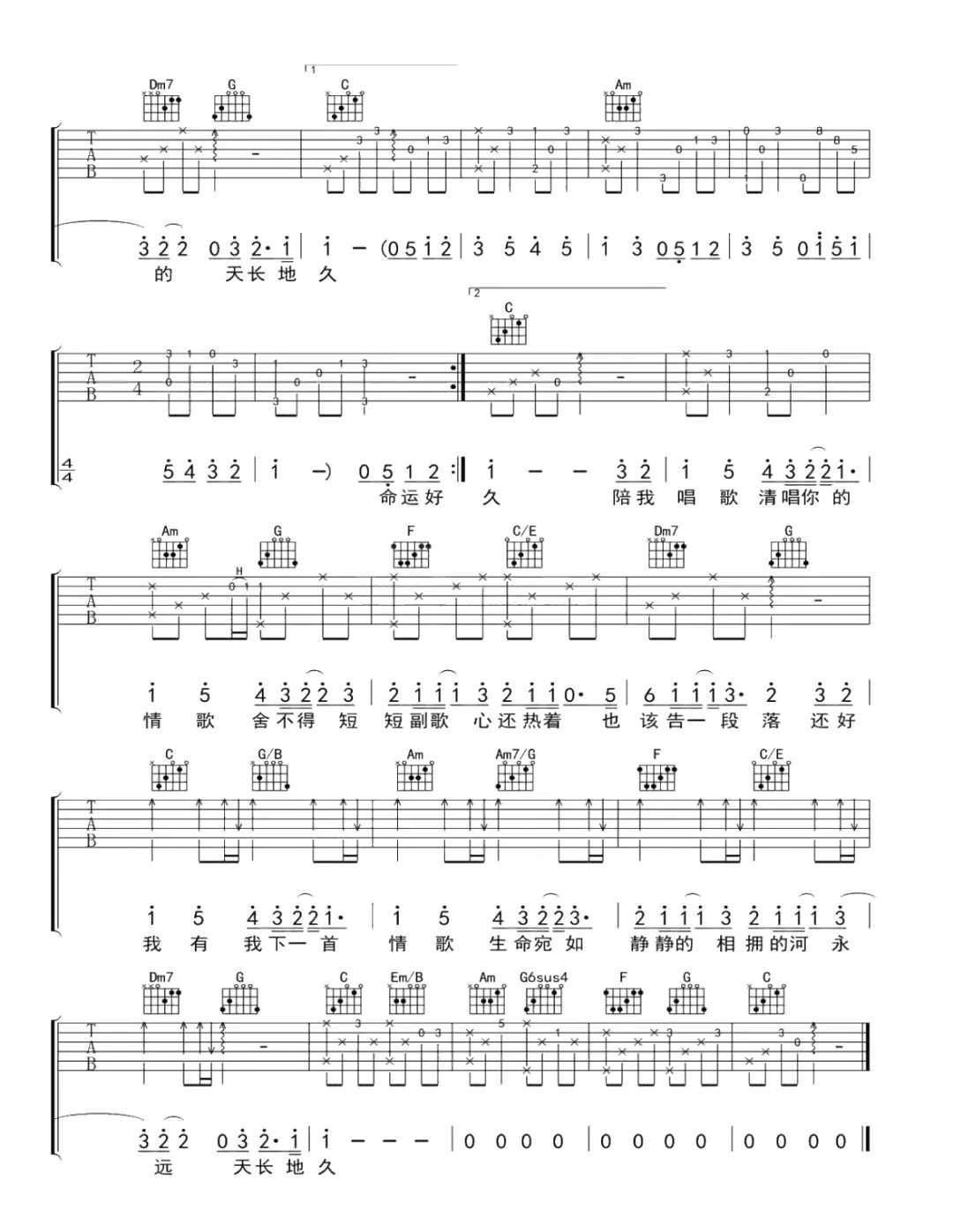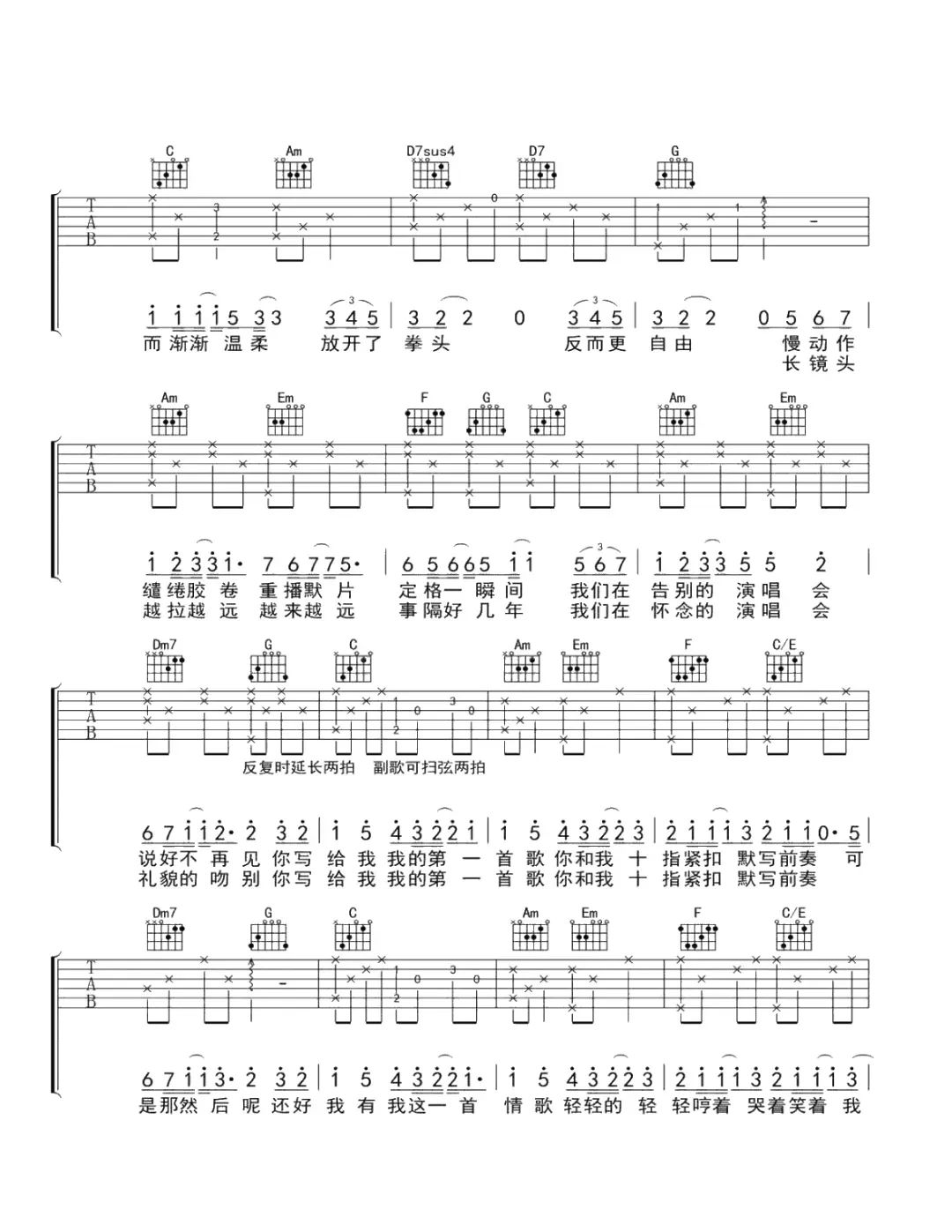 梁静茹《情歌》C调吉他谱_高清吉他谱
