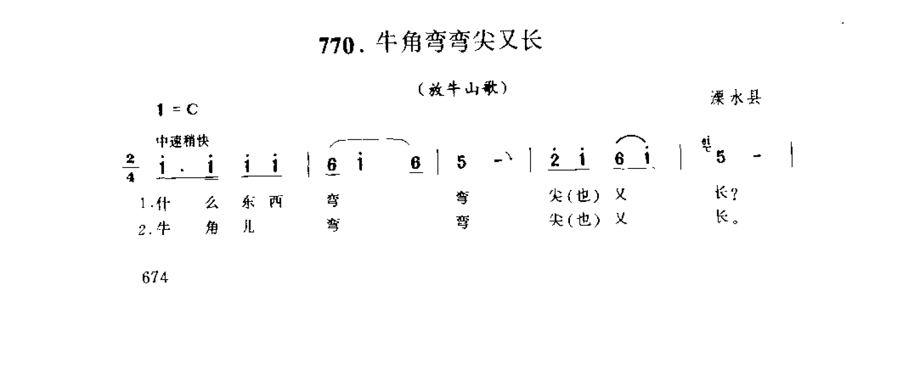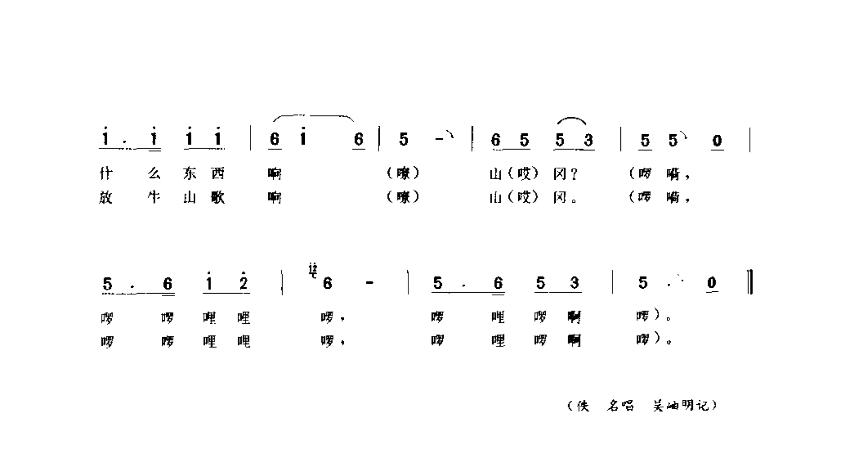 山歌:牛角弯弯尖又长(放牛山歌) 溧水县简谱歌词是曲谱查询网于2024年12月23日 16:18:06更新在民歌曲谱频道中的内容,收录在民歌曲谱栏目中;曲谱查询网分享的山歌:牛角弯弯尖又长(放牛山歌) 溧水县简谱五线谱高清图片,欢迎在线免费下载;曲谱查询网无需注册,即可直接下载海量歌曲谱与乐器学习相关资料。