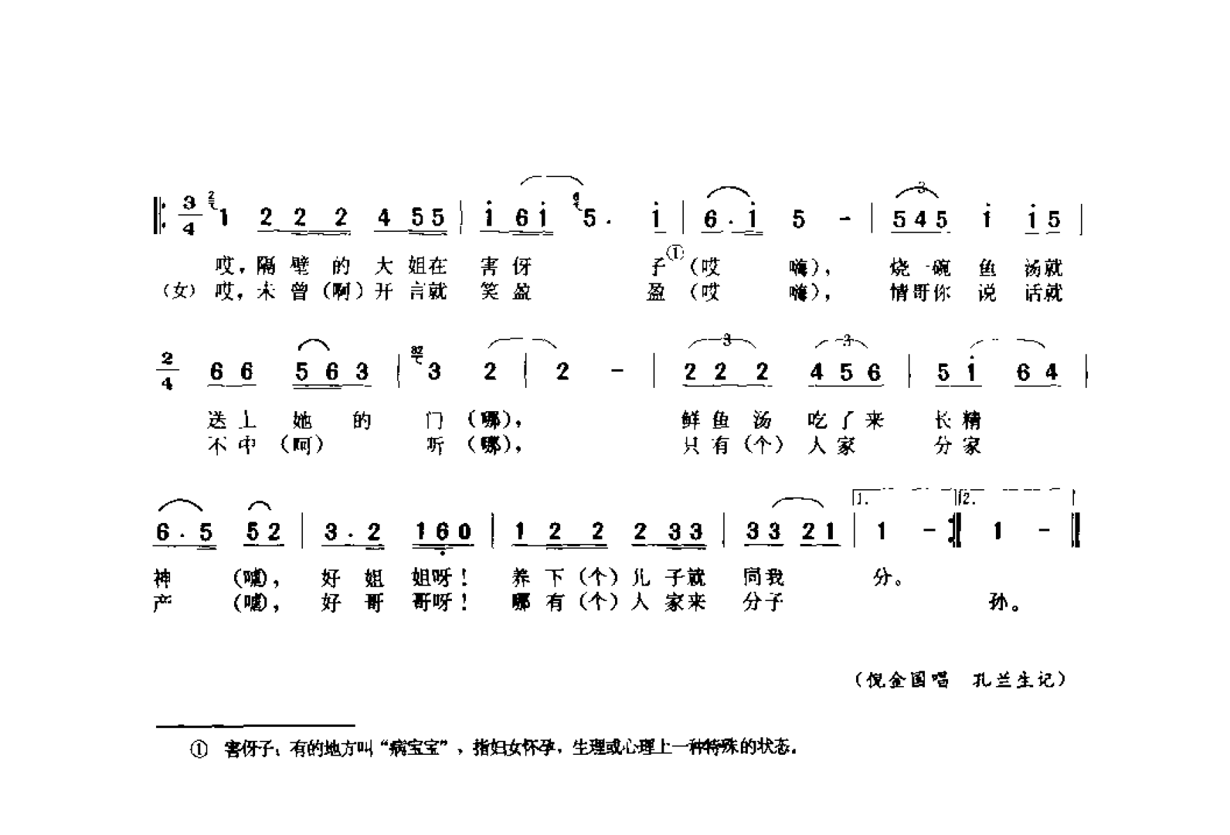 害伢子:有的地方叫“病宝宝”,指妇女怀孕,生理或心理上一种特殊的状态,