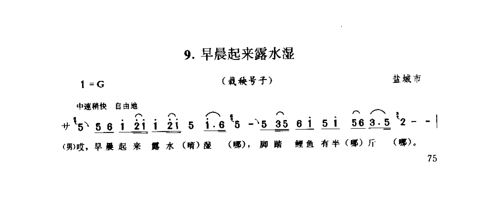 早上起来露水湿(栽秧号子) 盐城市简谱歌词是曲谱查询网于2024年12月18日 19:31:38更新在民歌曲谱频道中的内容,收录在民歌曲谱栏目中;曲谱查询网分享的早上起来露水湿(栽秧号子) 盐城市简谱五线谱高清图片,欢迎在线免费下载;曲谱查询网无需注册,即可直接下载海量歌曲谱与乐器学习相关资料。